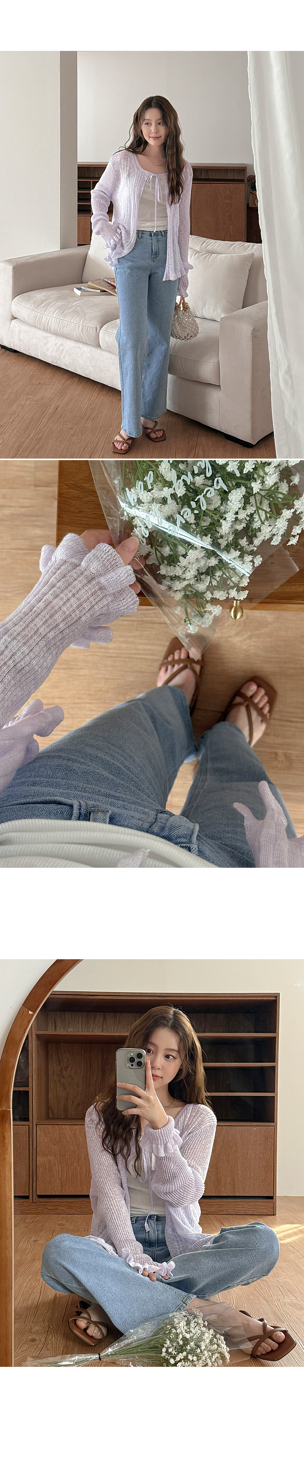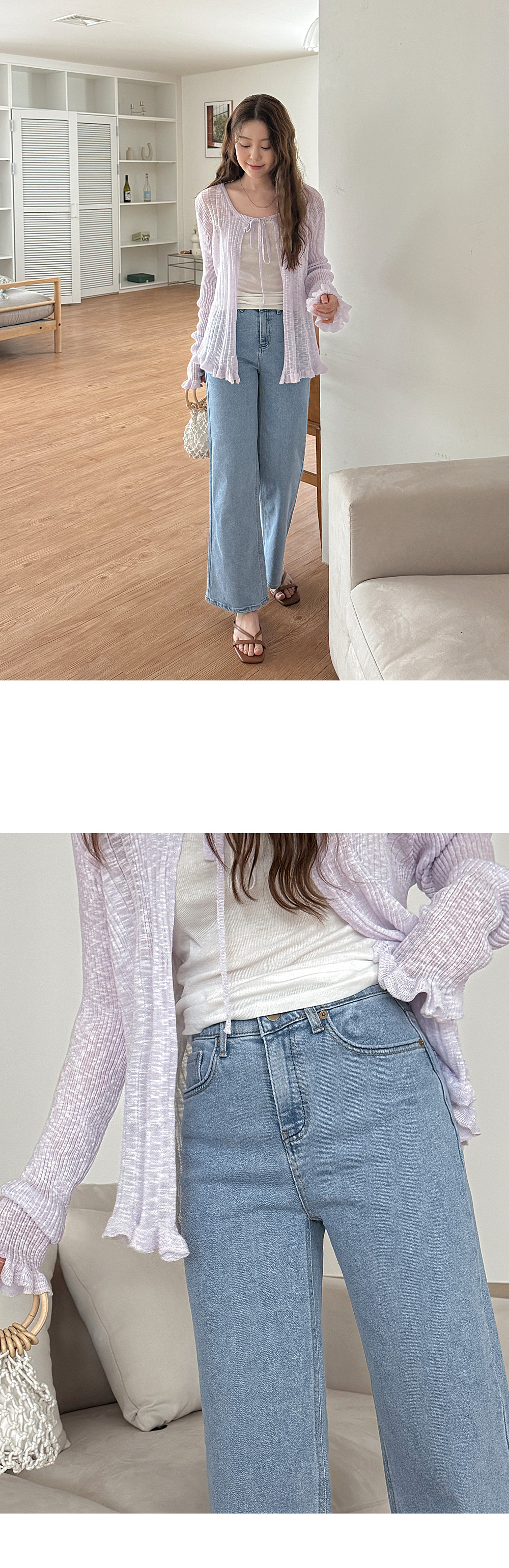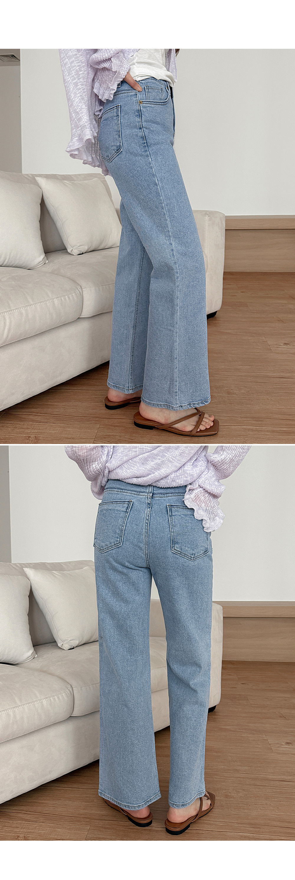- 깔끔하게 떨어지는 실루엣의 데님 팬츠