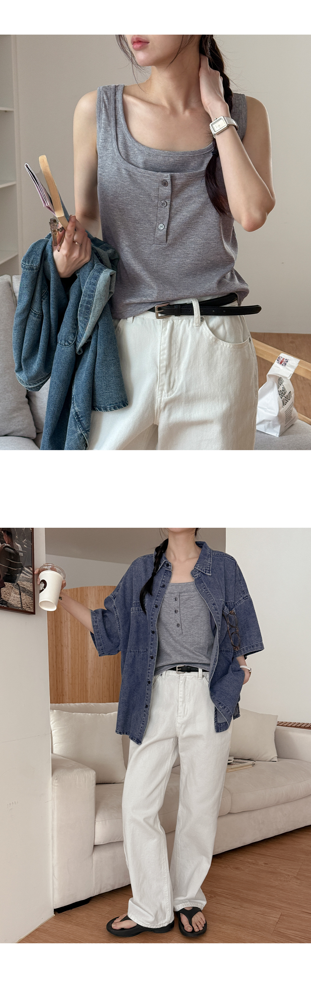 미코 レイヤード 버튼 袖なし 87277