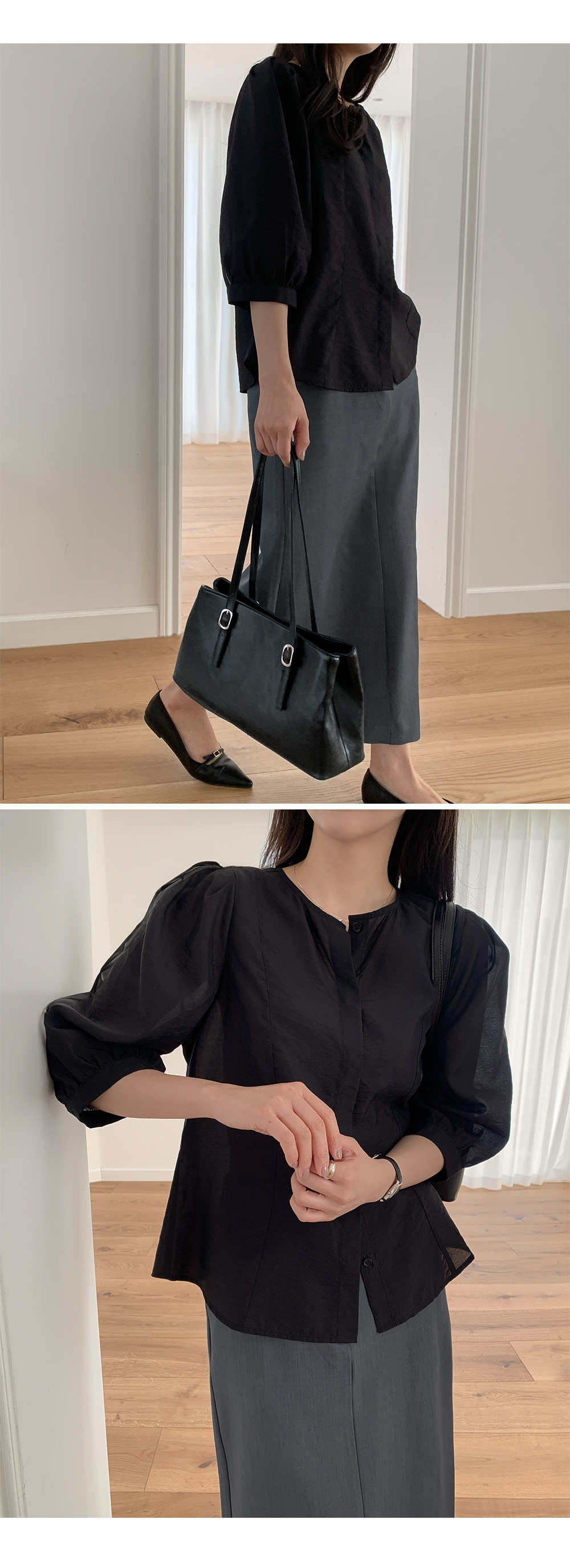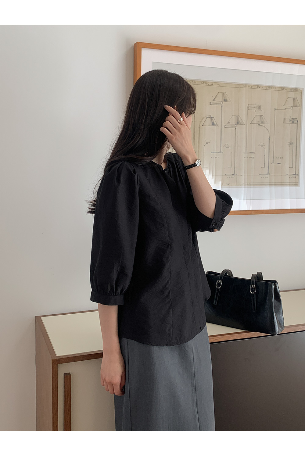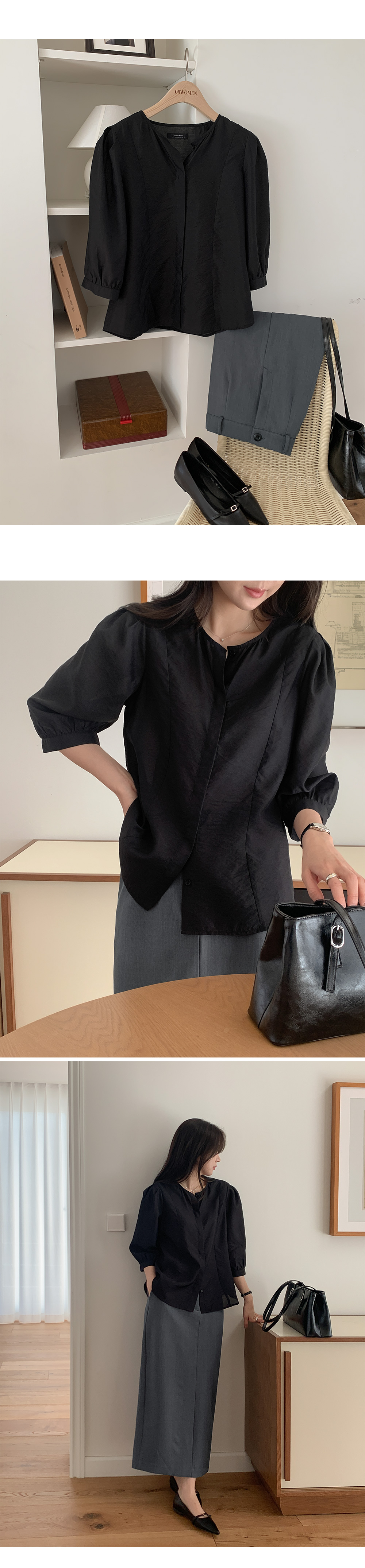 • 에르테나 ラウンドネック 7分丈 ブラウス 87185