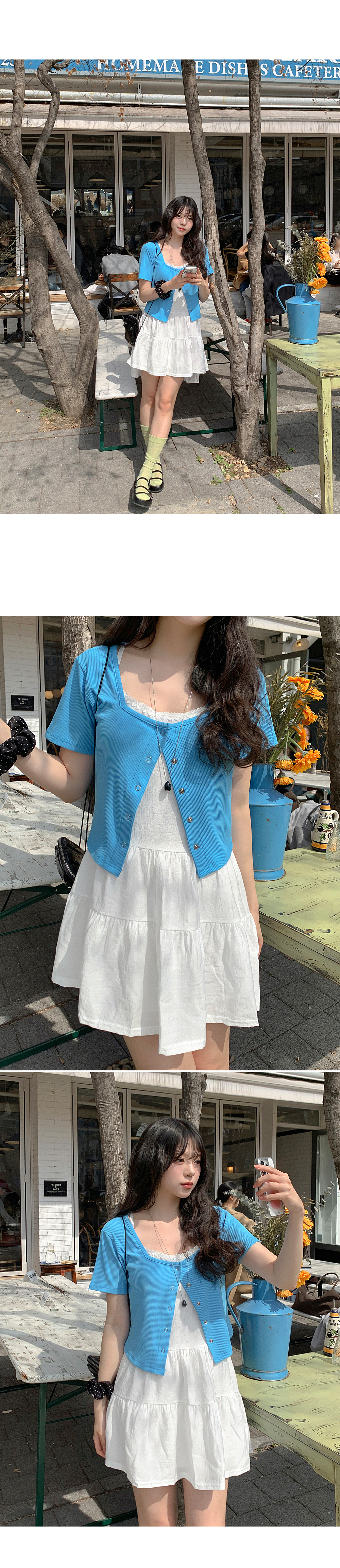 - 넥 라인을 따라 더해진 레이스 디테일로