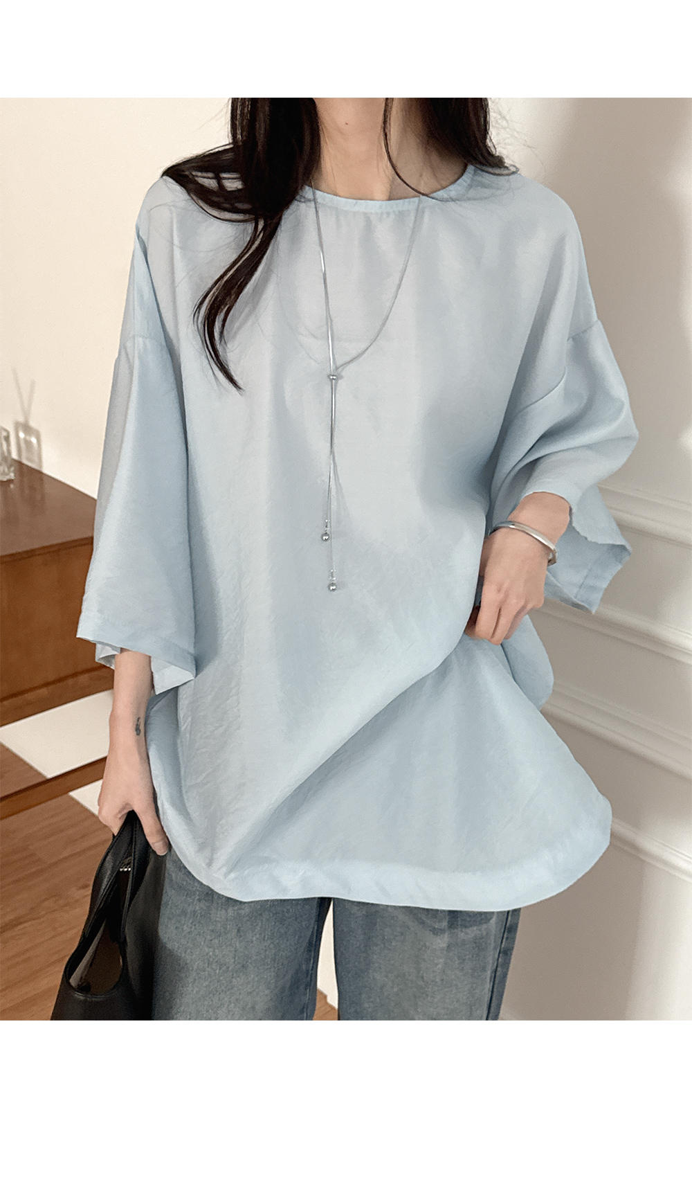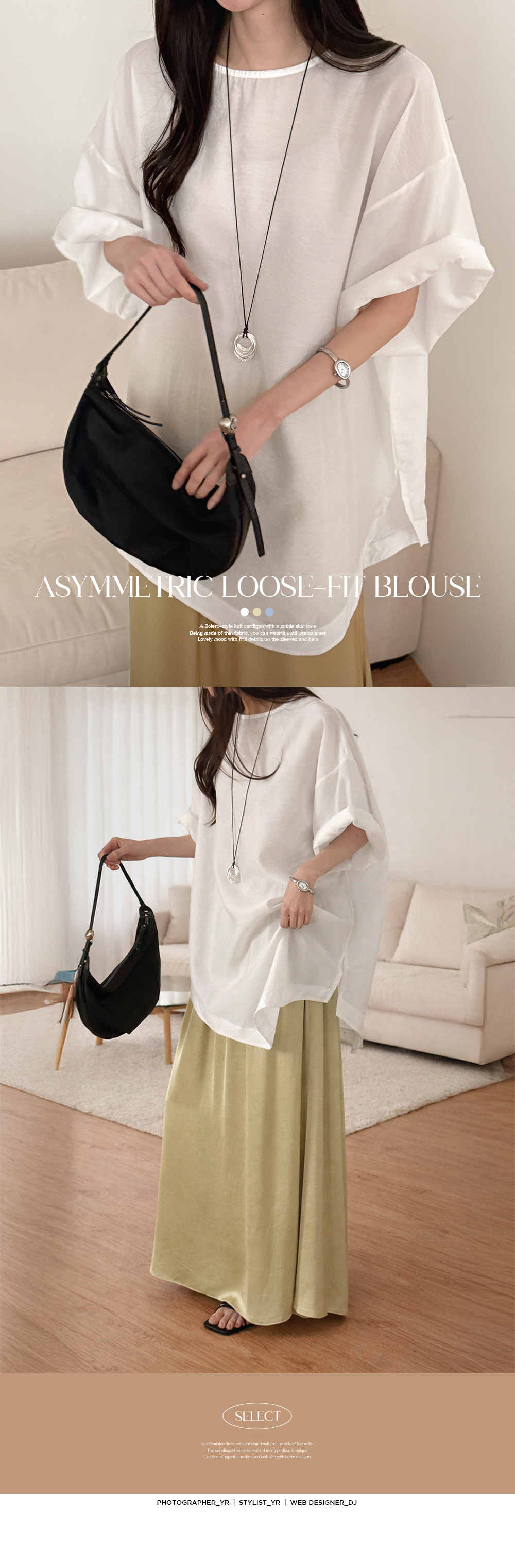 [09초이스] ミニマル 언발 ルーズフィット 半袖 ブラウス 87301