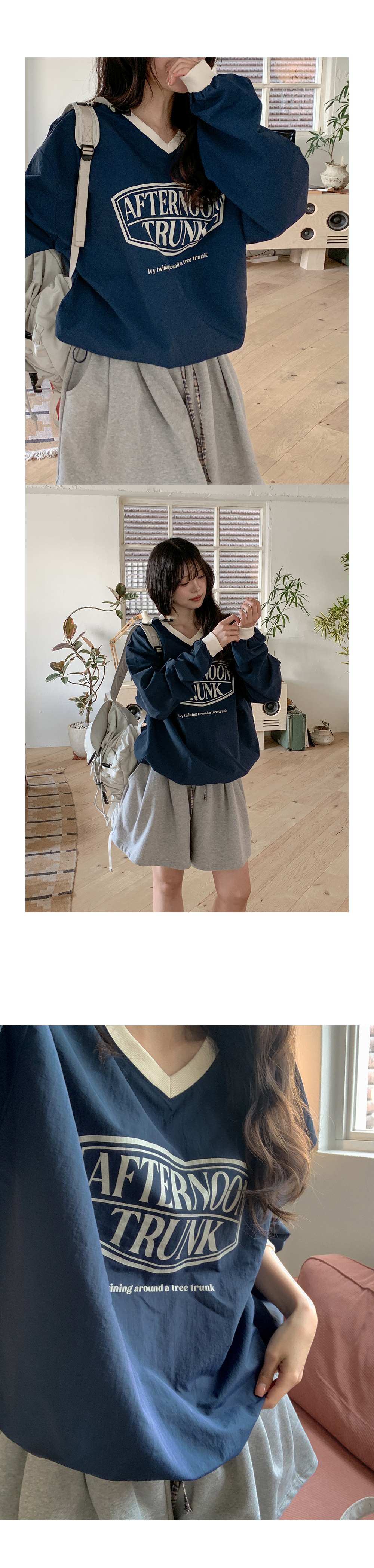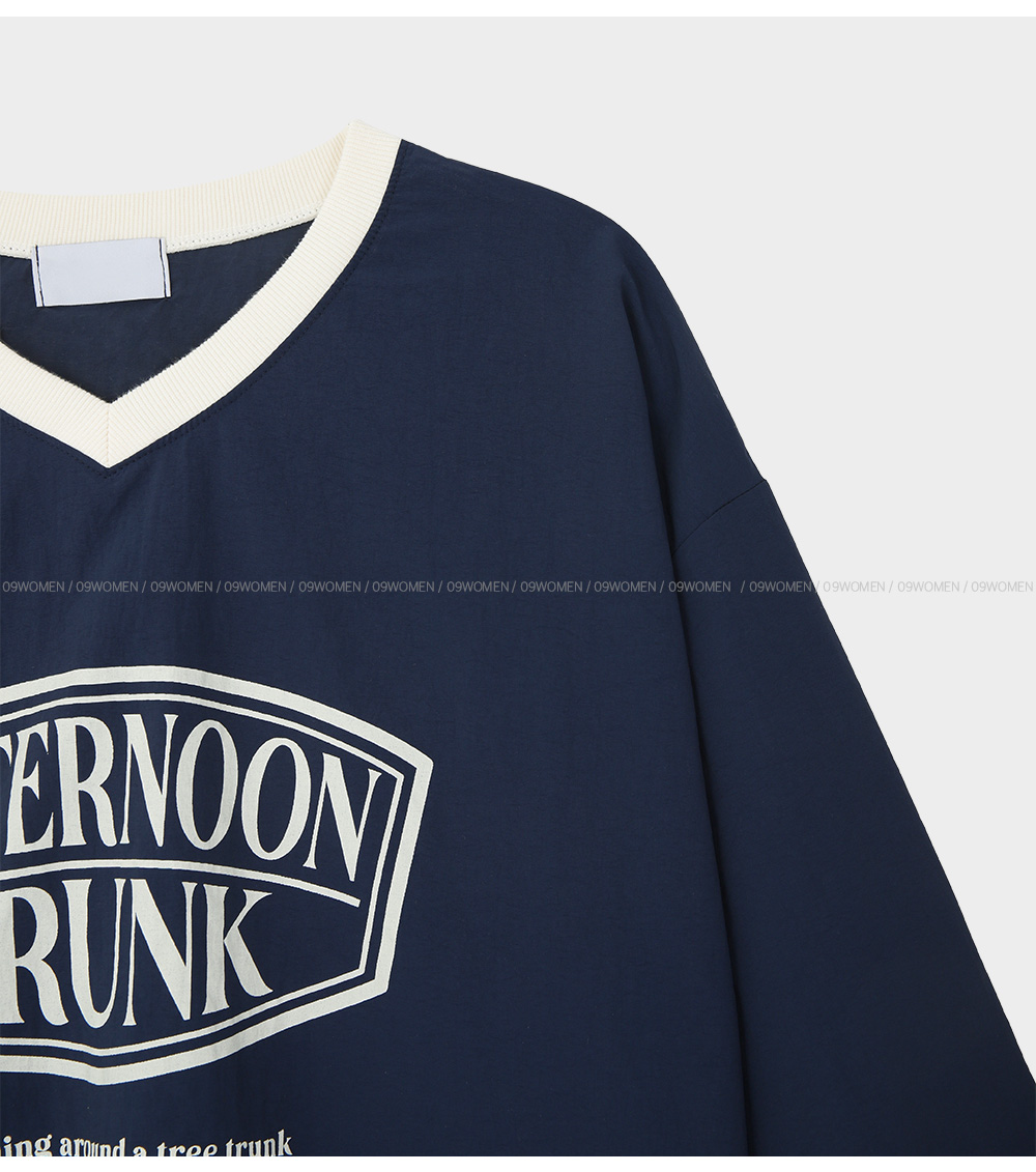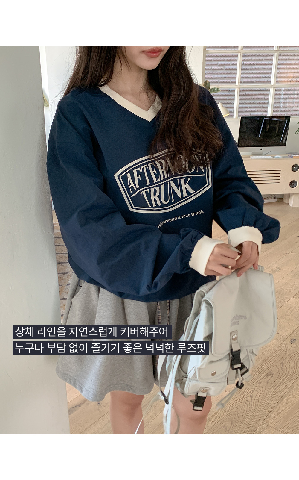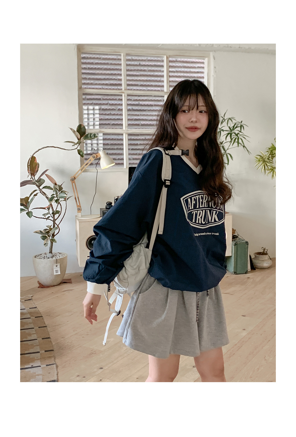 에어린 カラー 配色 나일론 Vネック ルーズフィット スウェット 87260