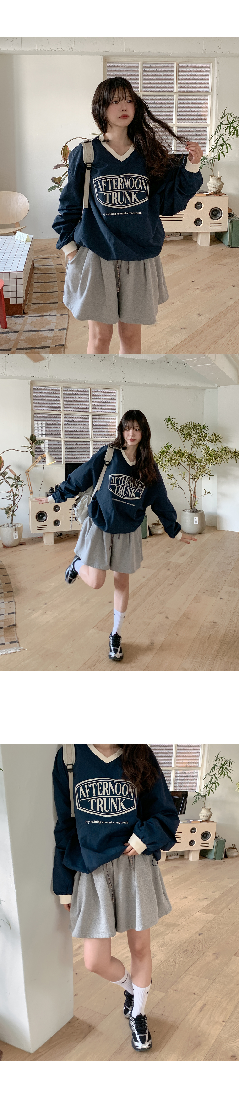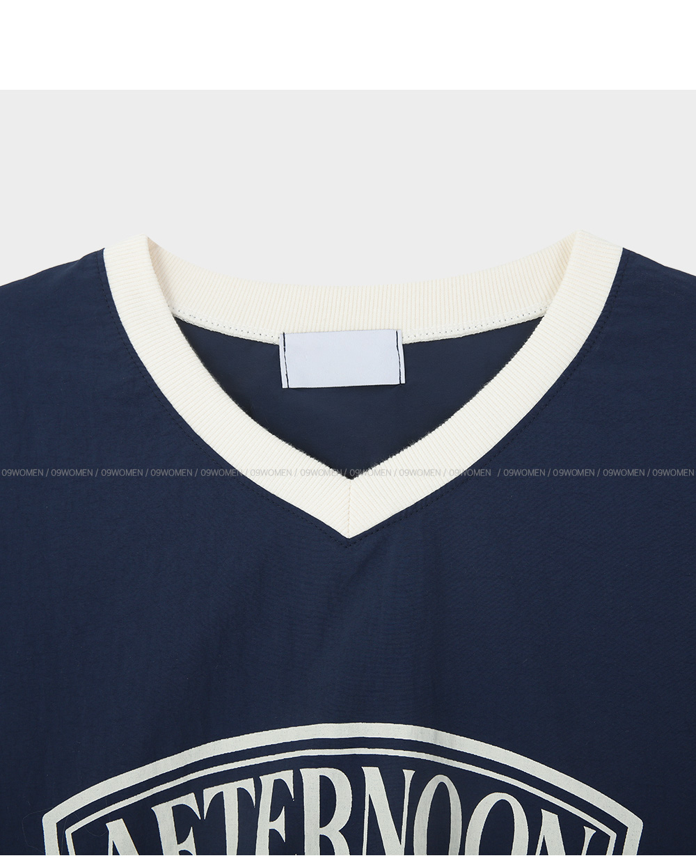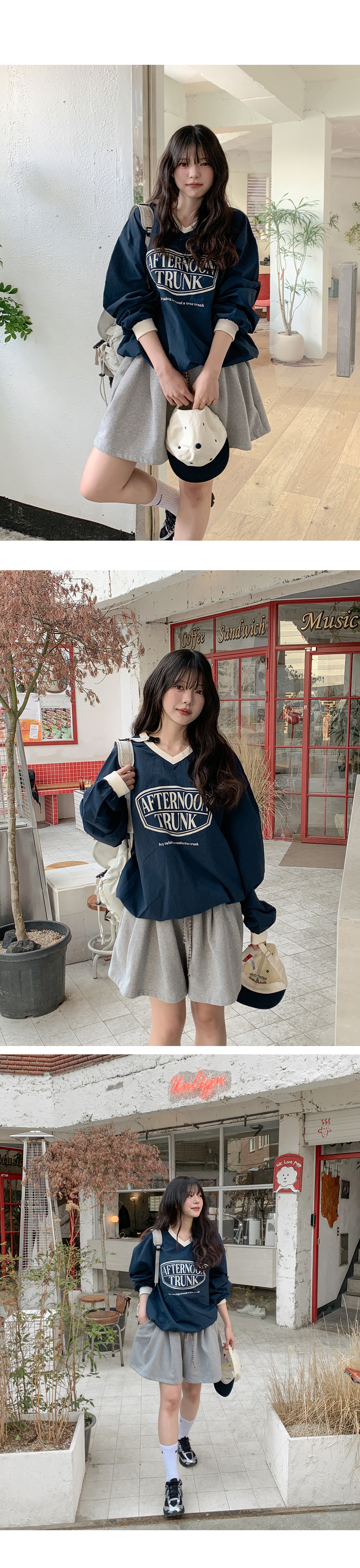 에어린 カラー 配色 나일론 Vネック ルーズフィット スウェット 87260