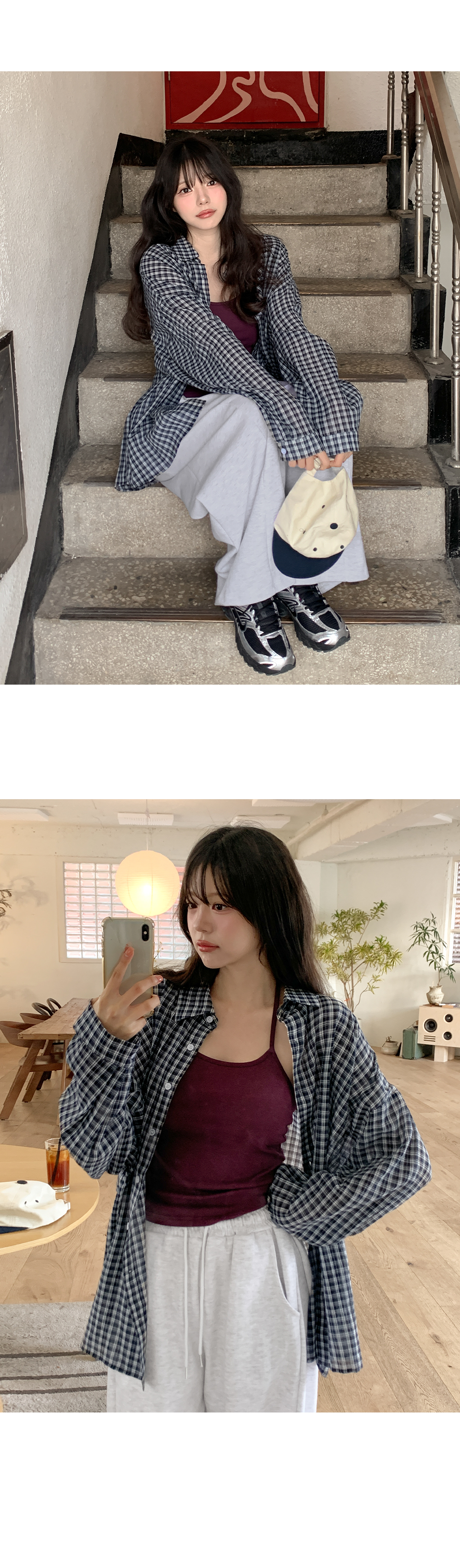 • [살안타템] 리터닝 ルーズフィット チェック シャツ 87256