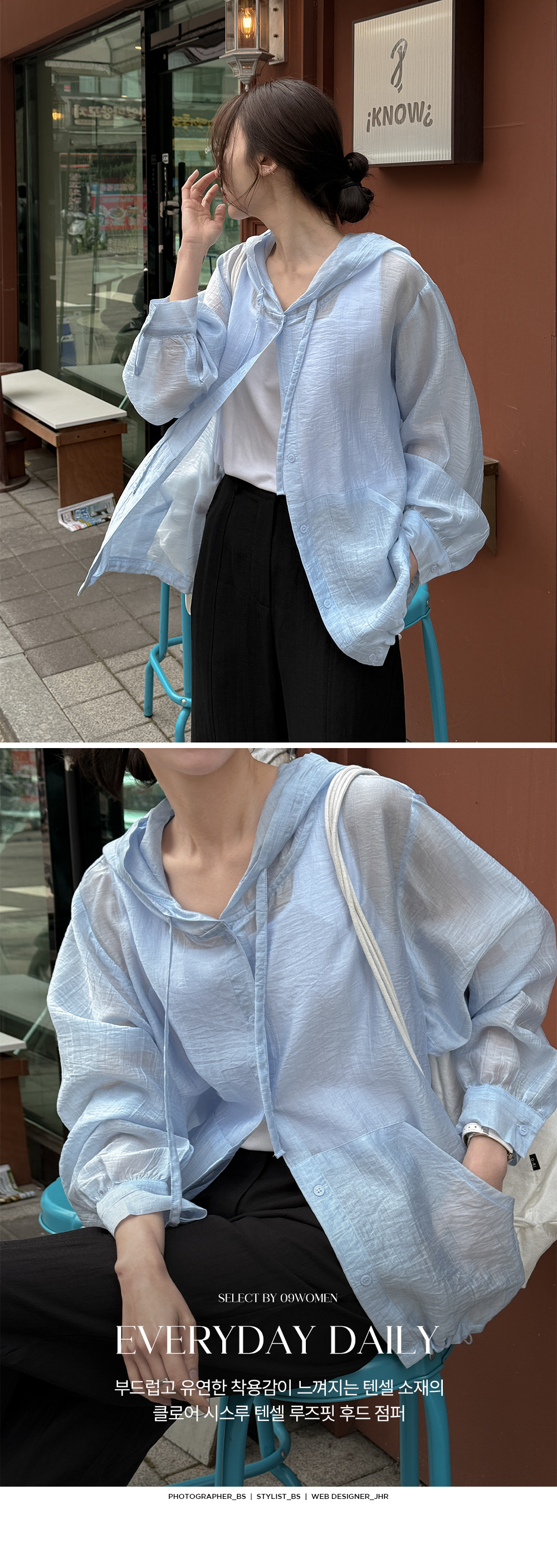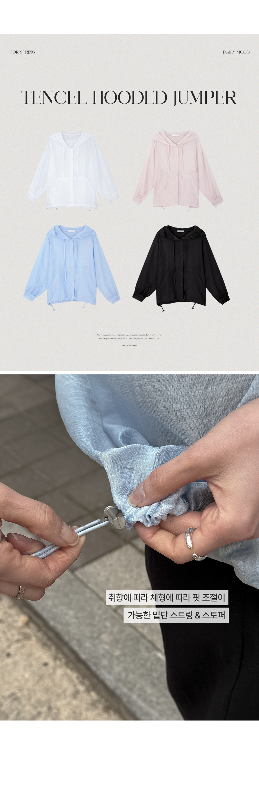 - 가볍고 여리한 무드의 텐셀 후드 점퍼