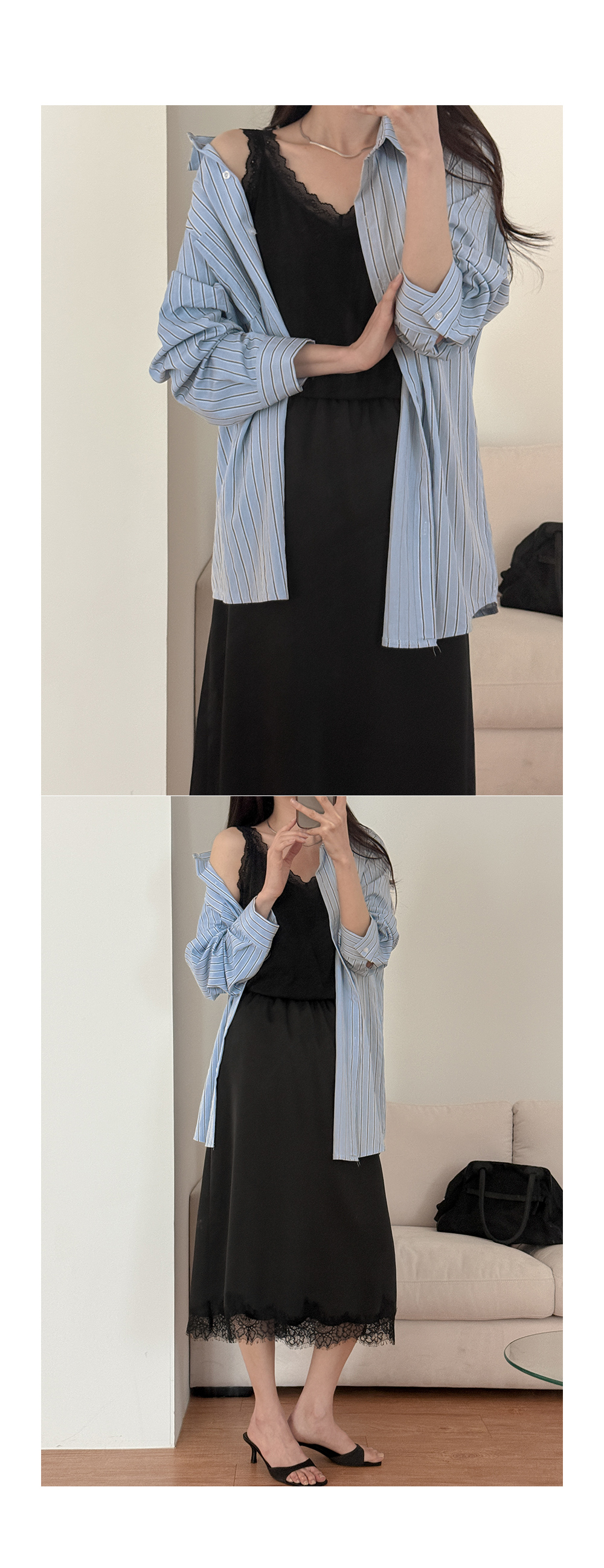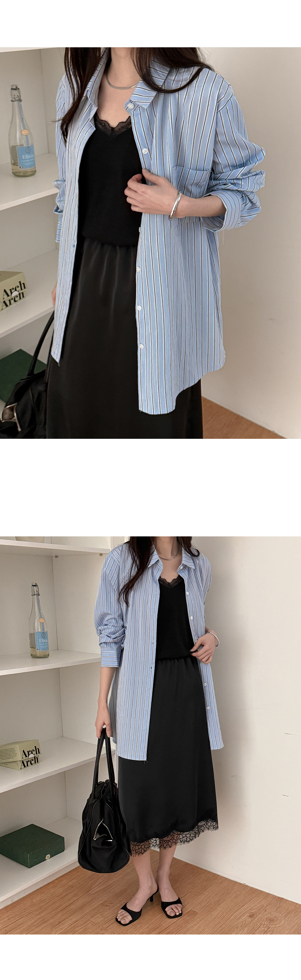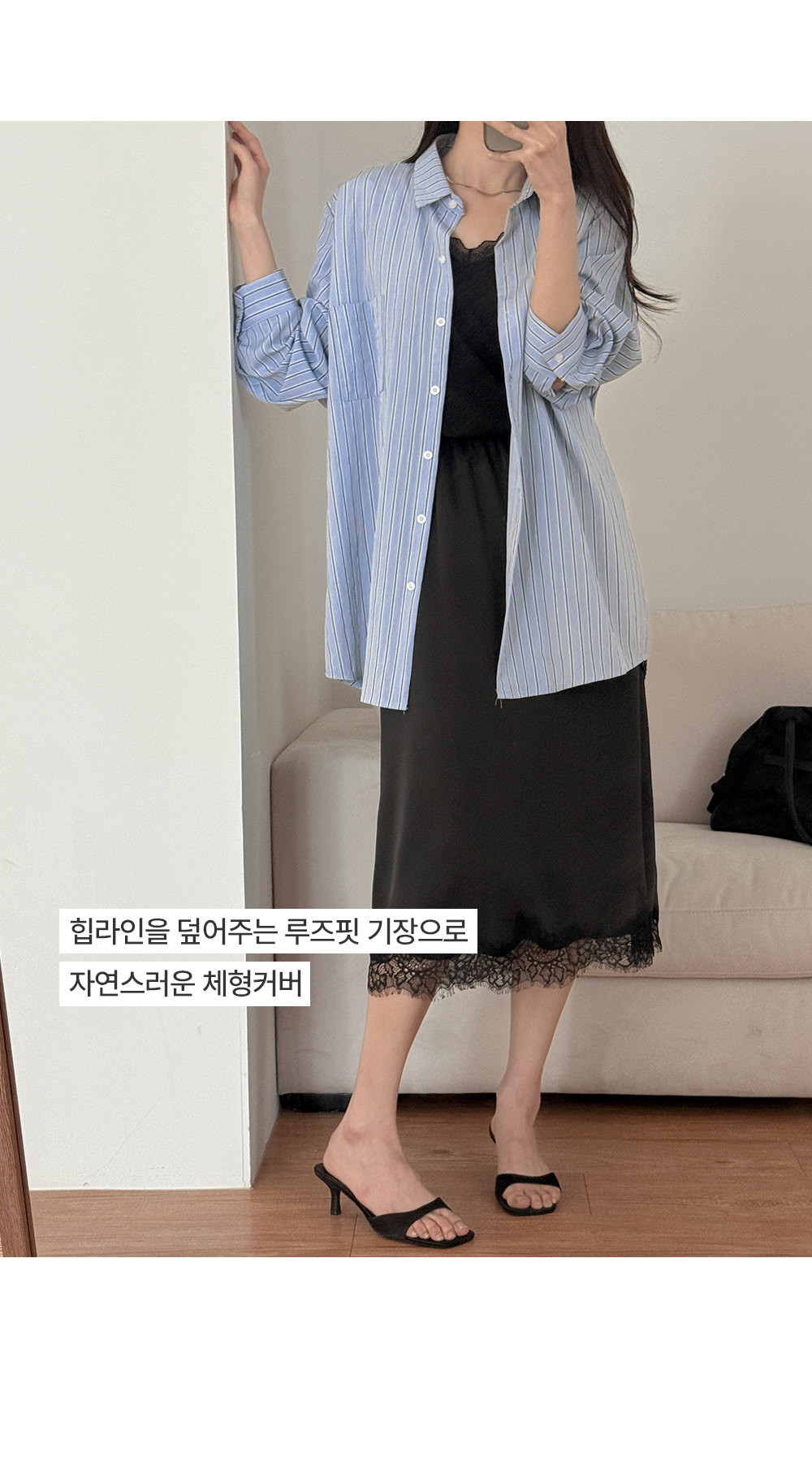 - 넉넉한 루즈핏 스트라이프 셔츠