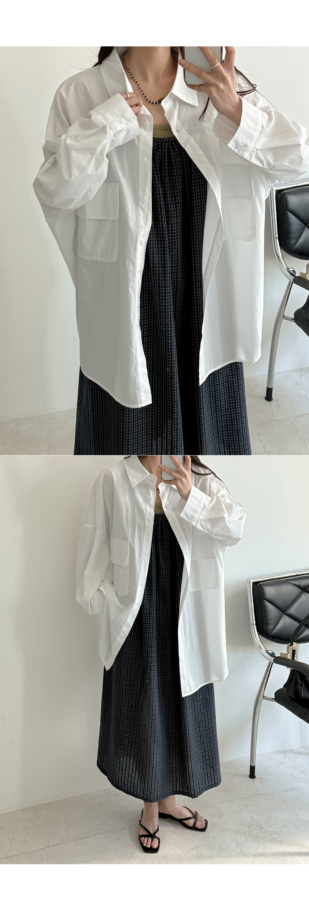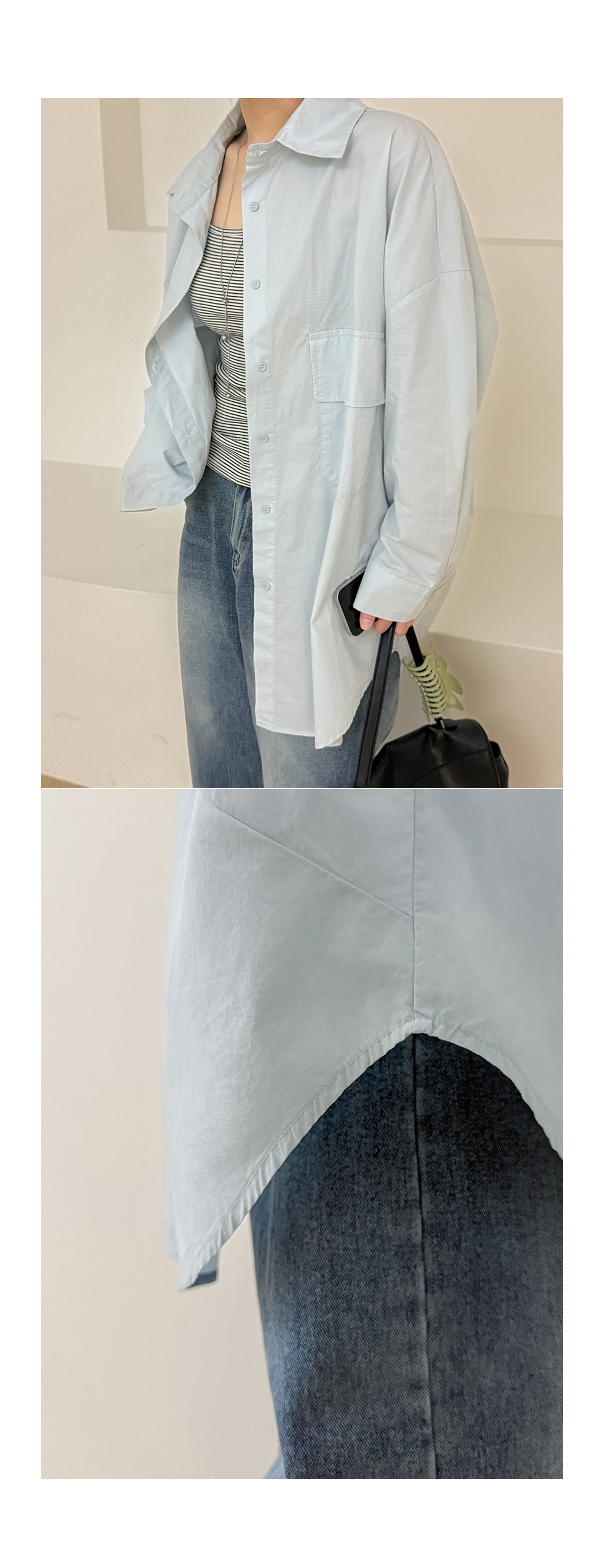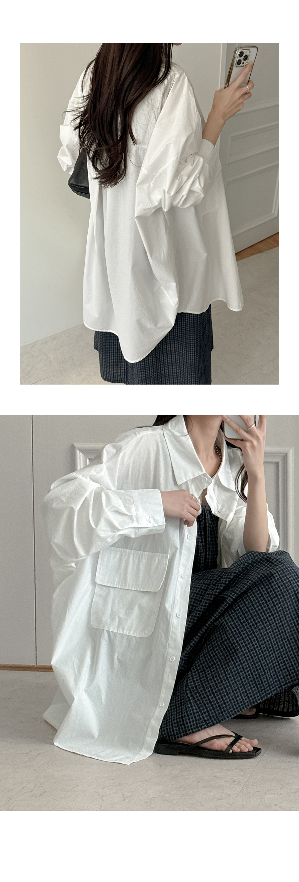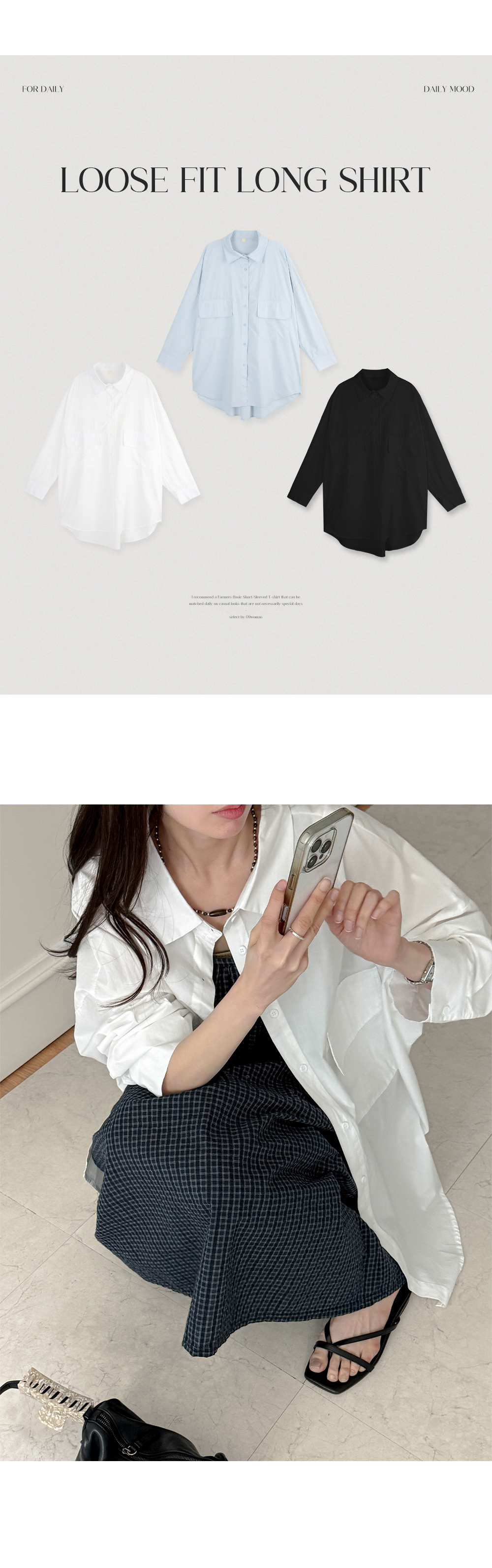 [09초이스] 여리하게 デイリー ルーズフィット コットン ロング シャツ 87486