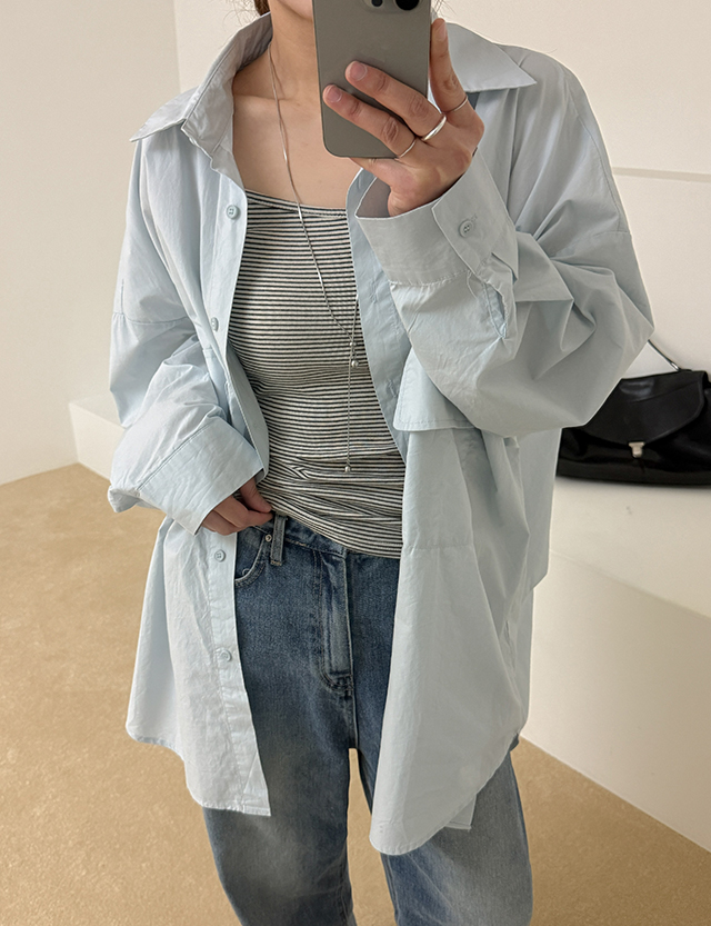 [09초이스] 여리하게 デイリー ルーズフィット コットン ロング シャツ 87486