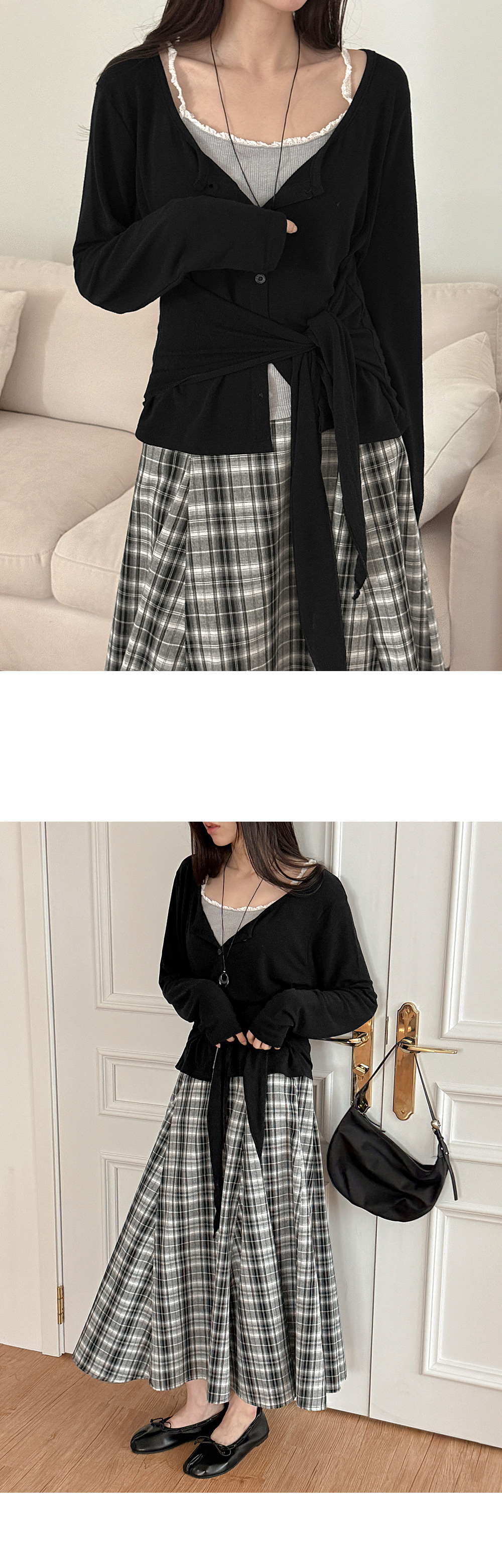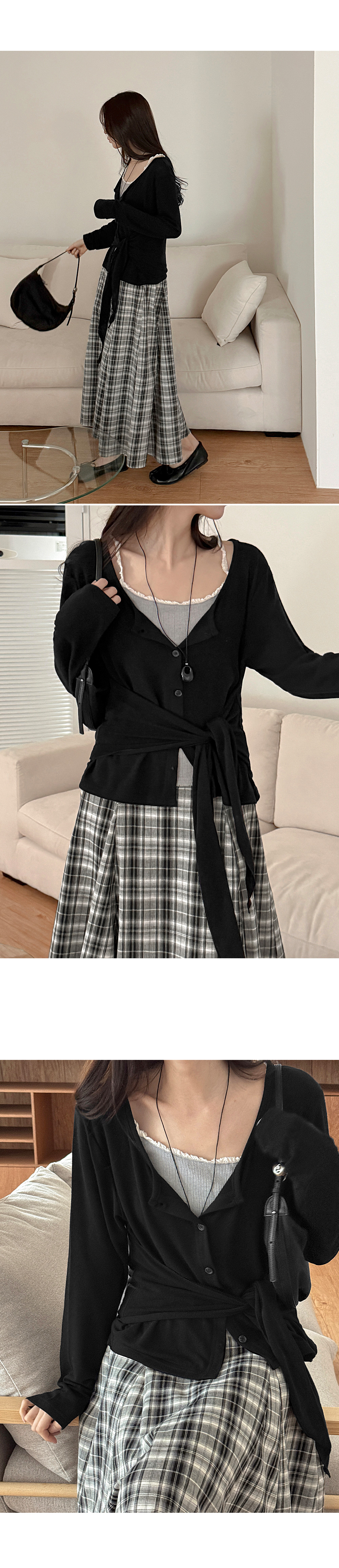 - 심플한 기본 가디건에 허리 스트랩 포인트로