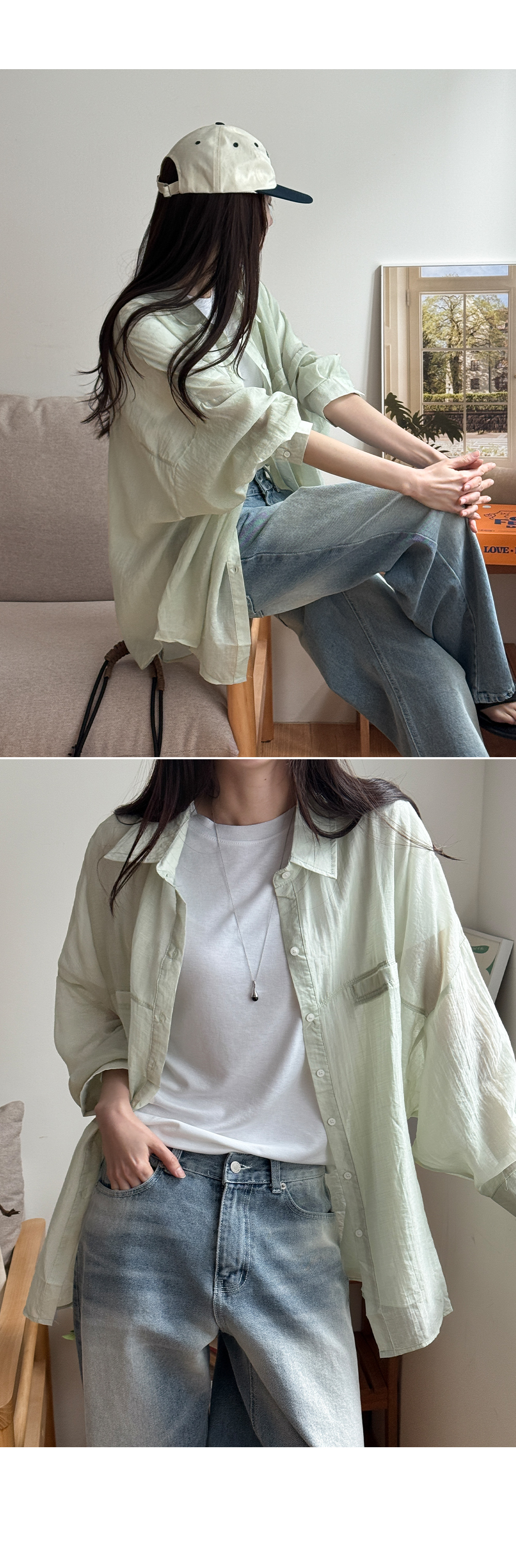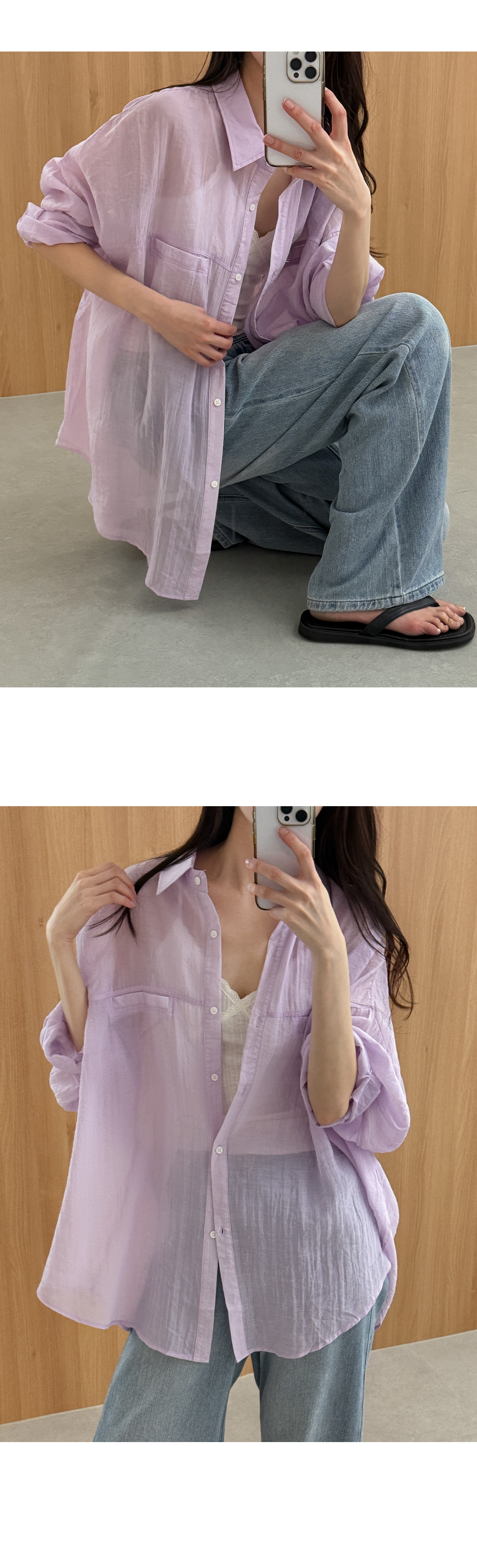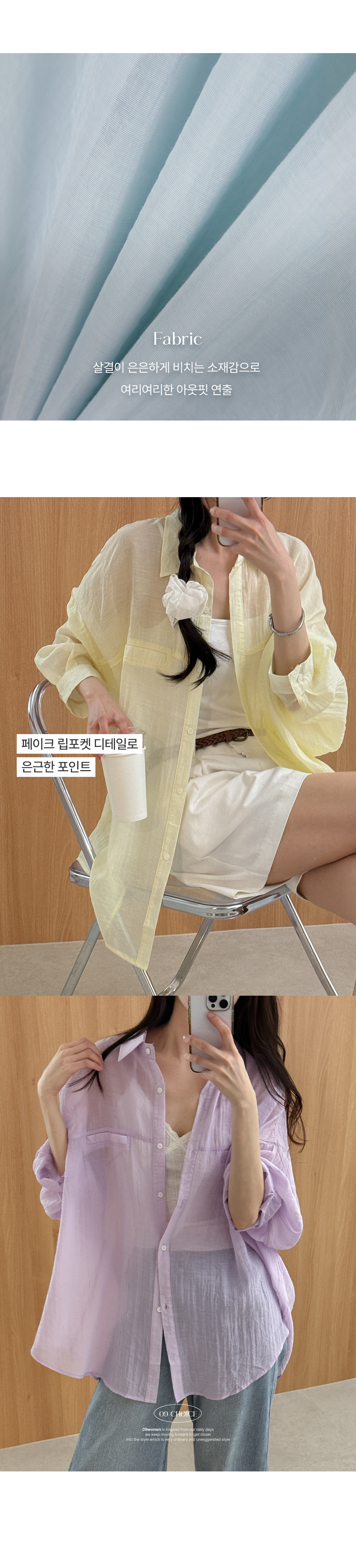 - 살결이 비치는 시스루한 소재감의 루즈핏 셔츠