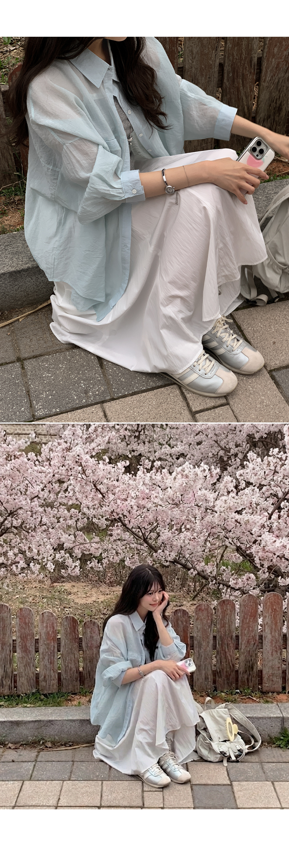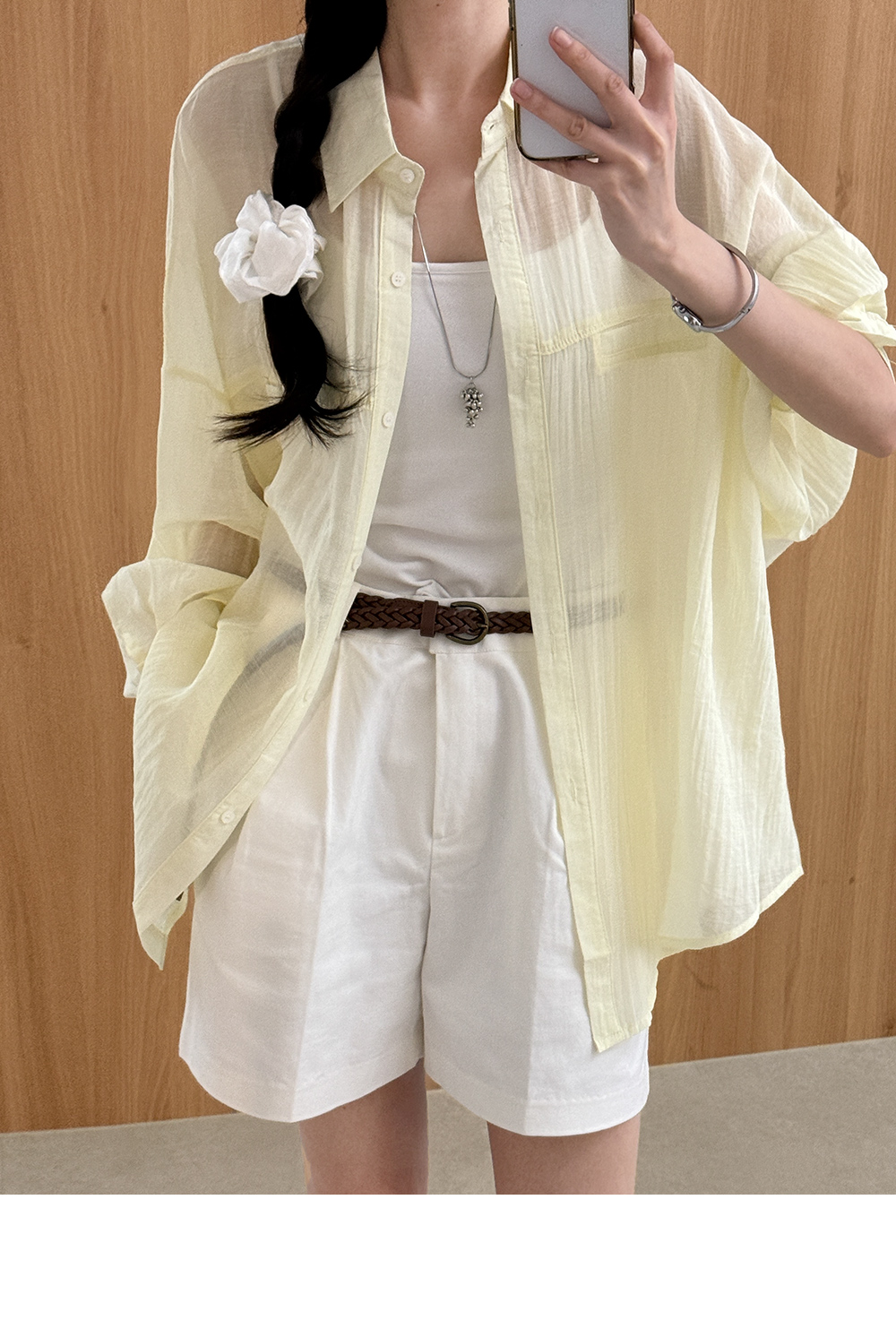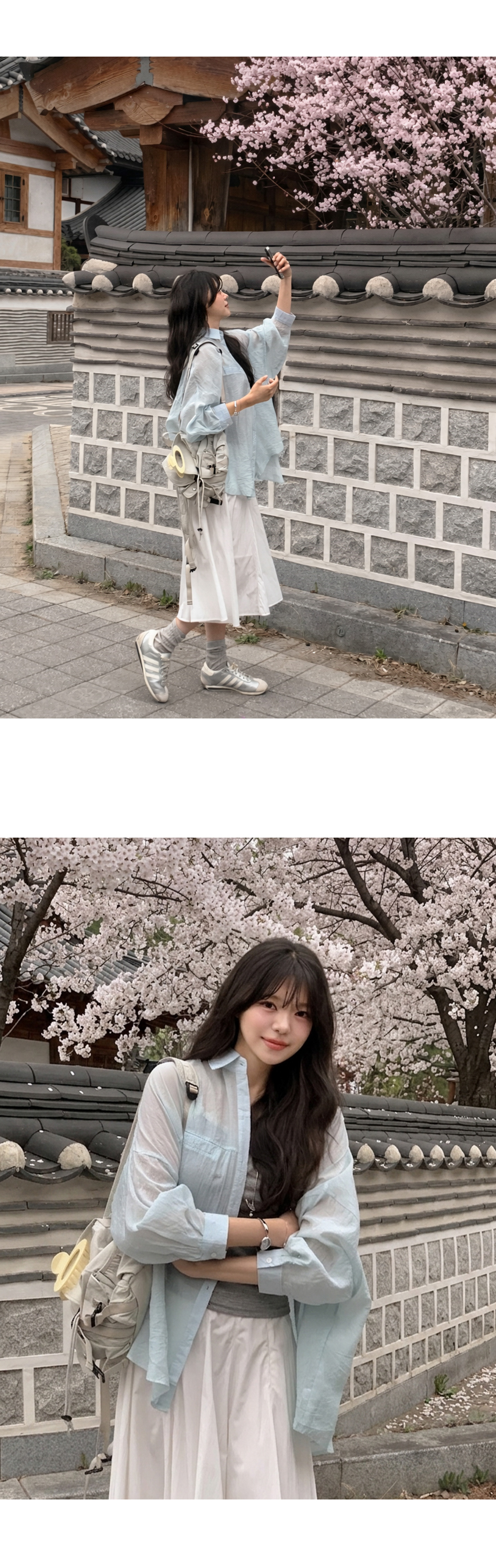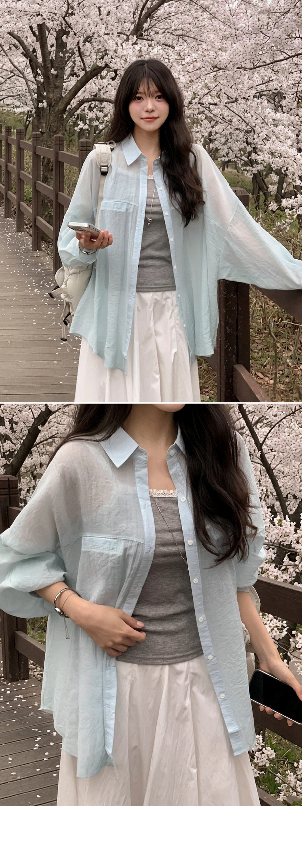 - 살결이 비치는 시스루한 소재감의 루즈핏 셔츠
