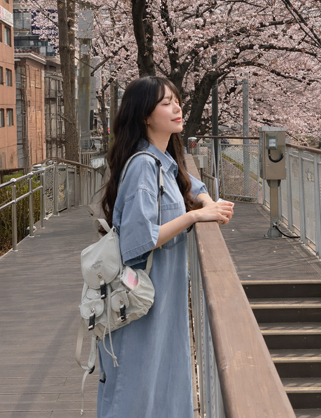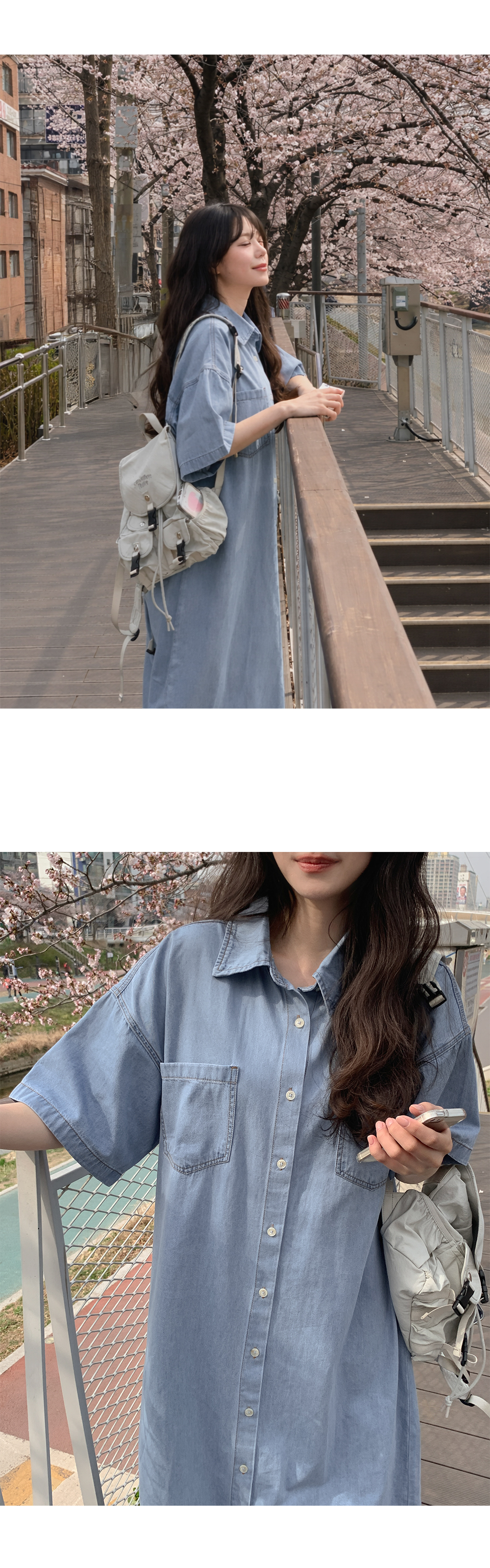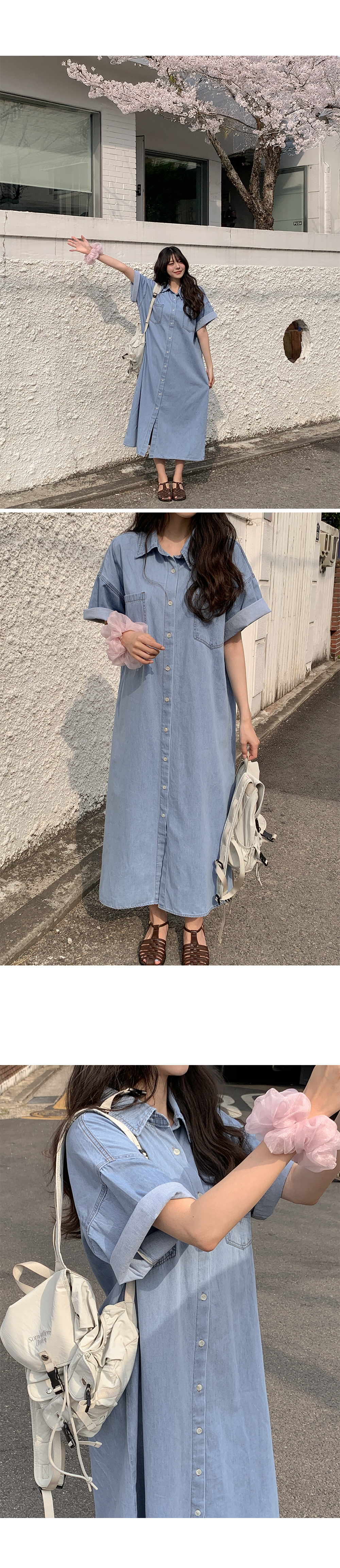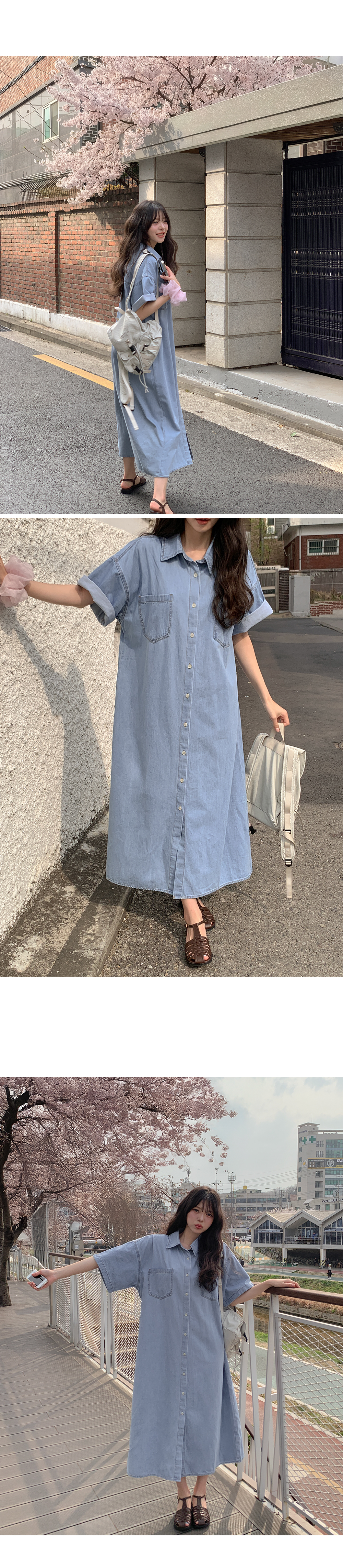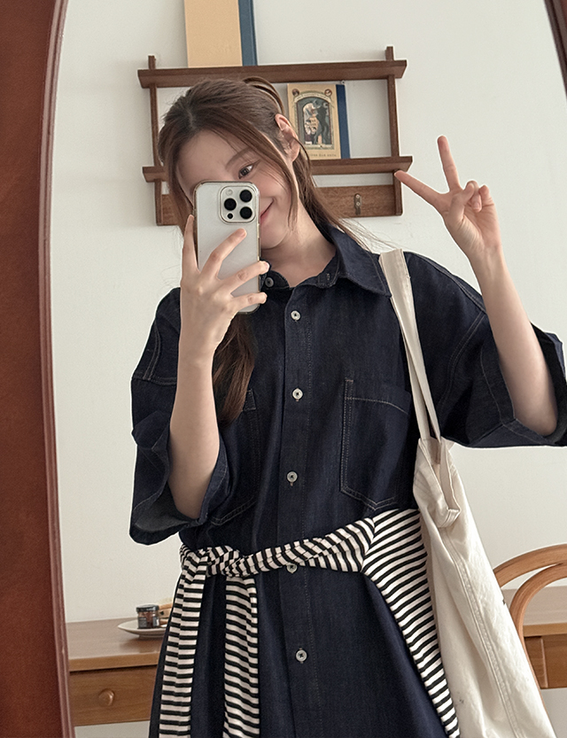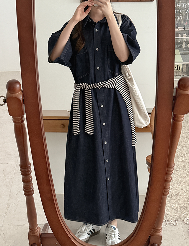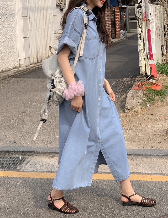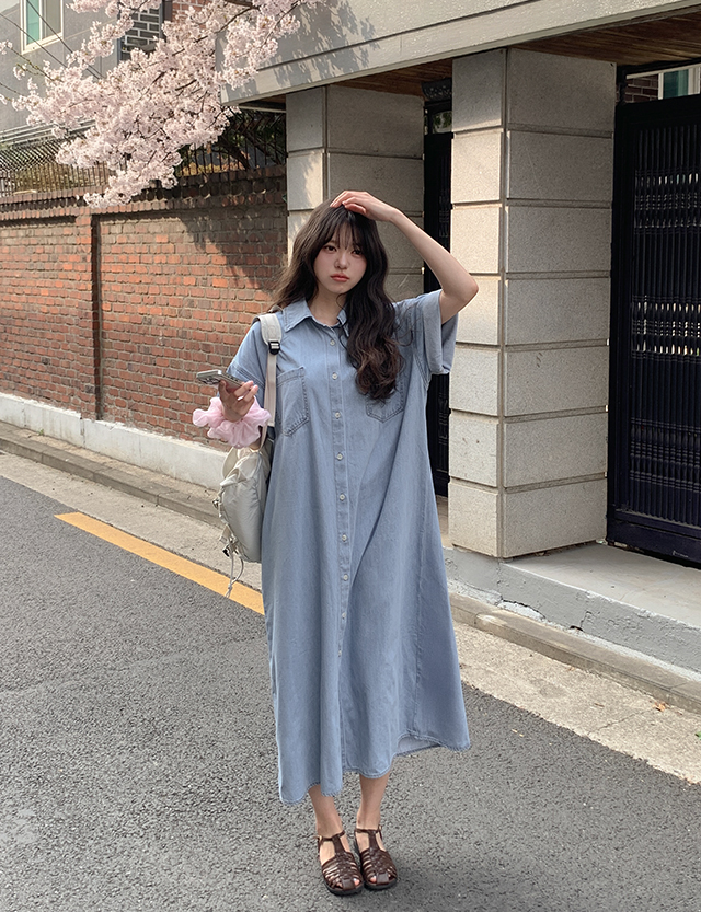 - 깔끔한 셔츠형 디자인으로 원피스 한 벌로 코디 완료
