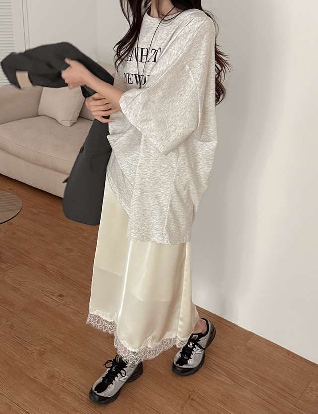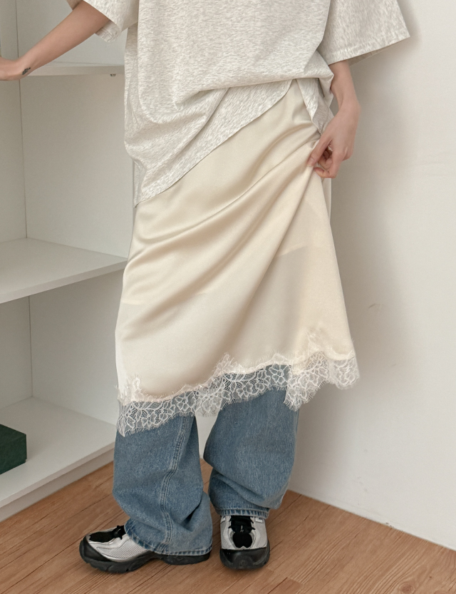 글리즈 ゴム レイス サテン 미디 スカート 87296