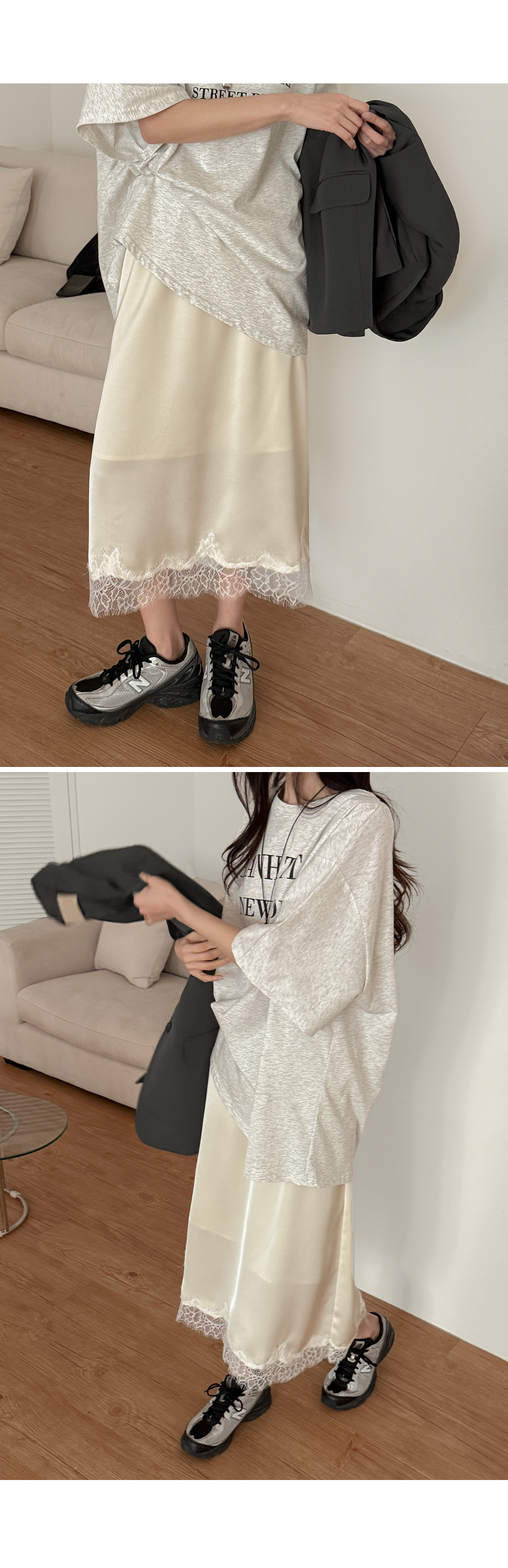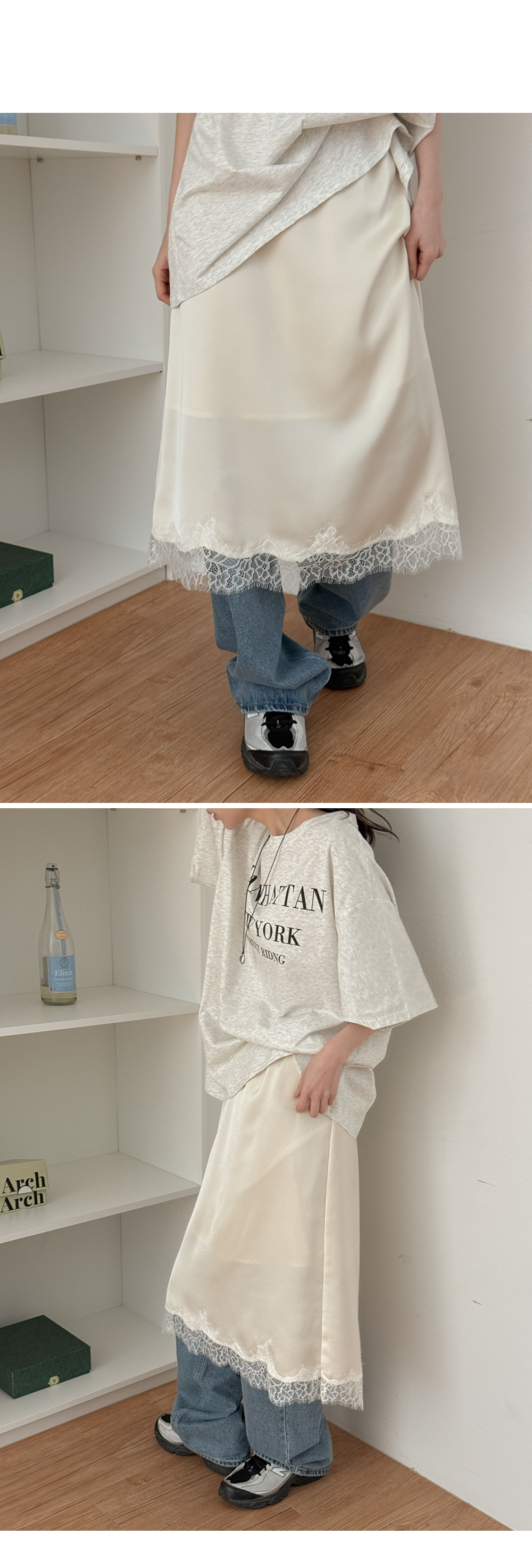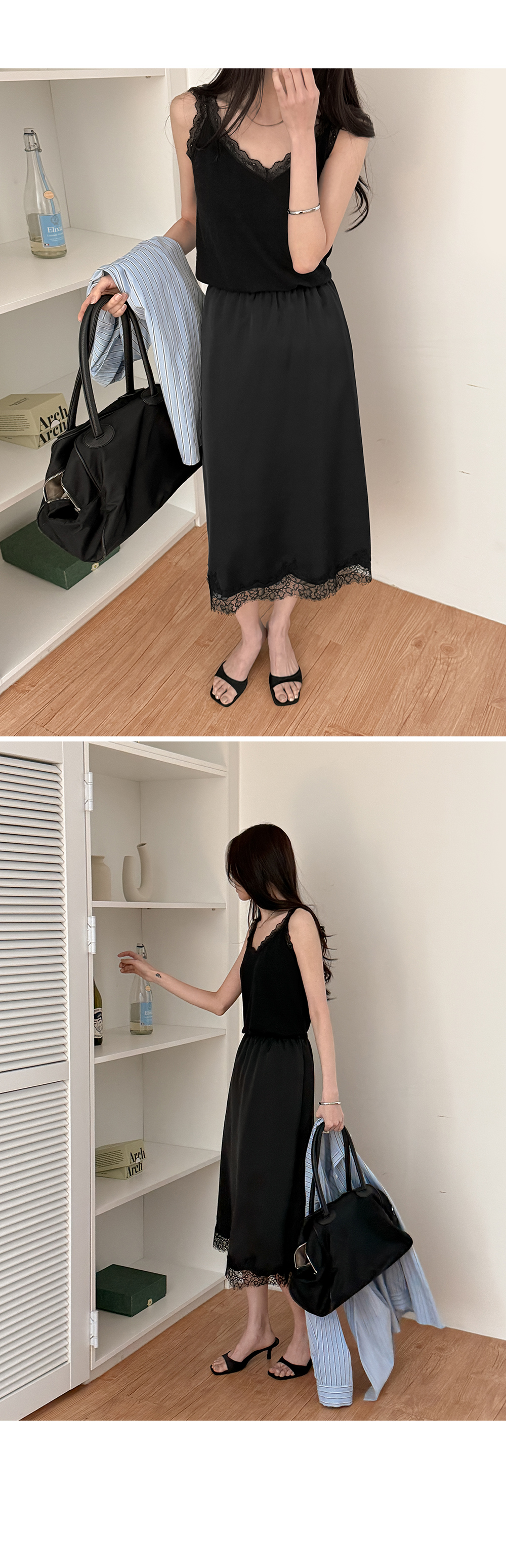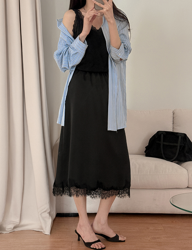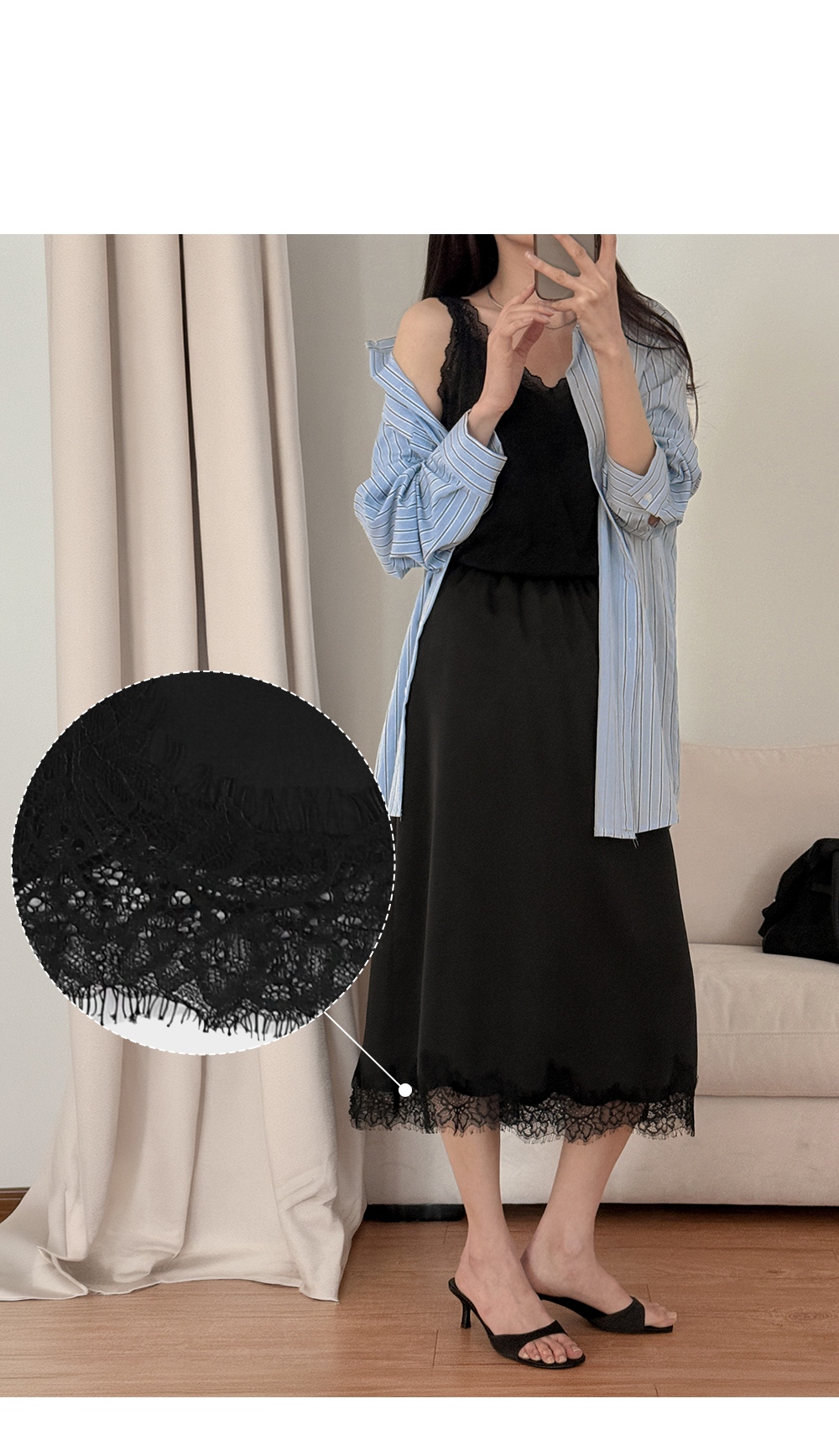 - 밑단에 더해진 레이스 디테일로 트렌디한 무드