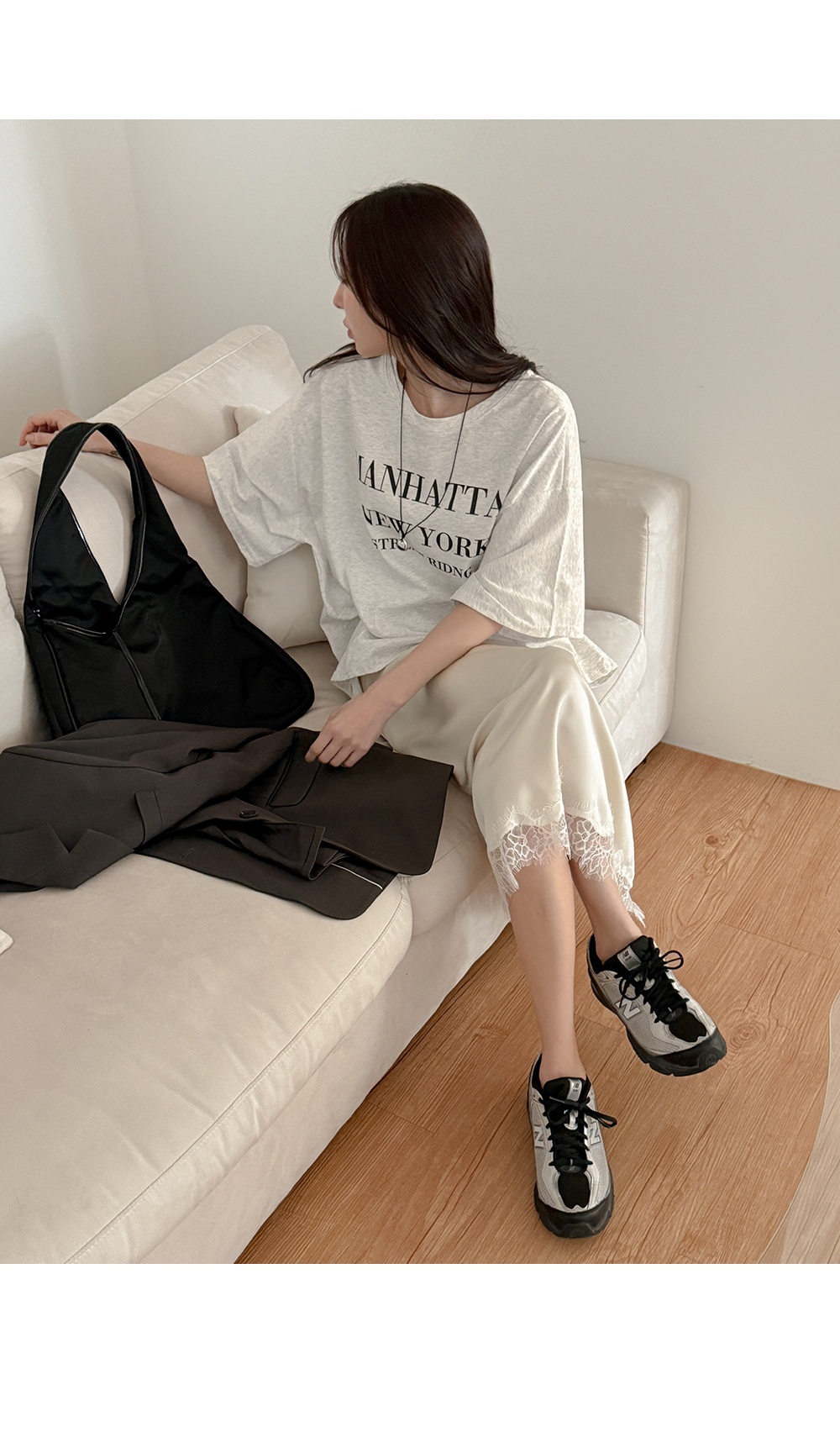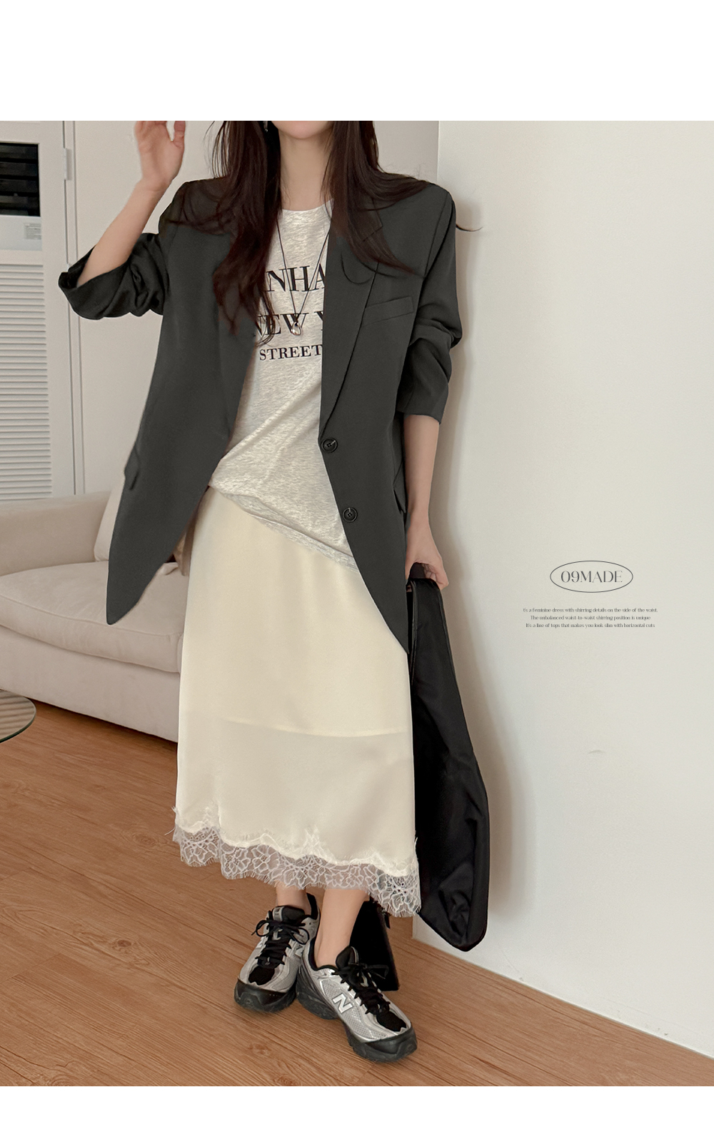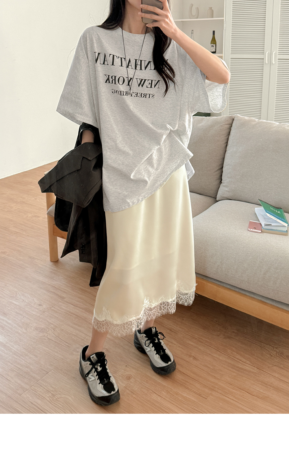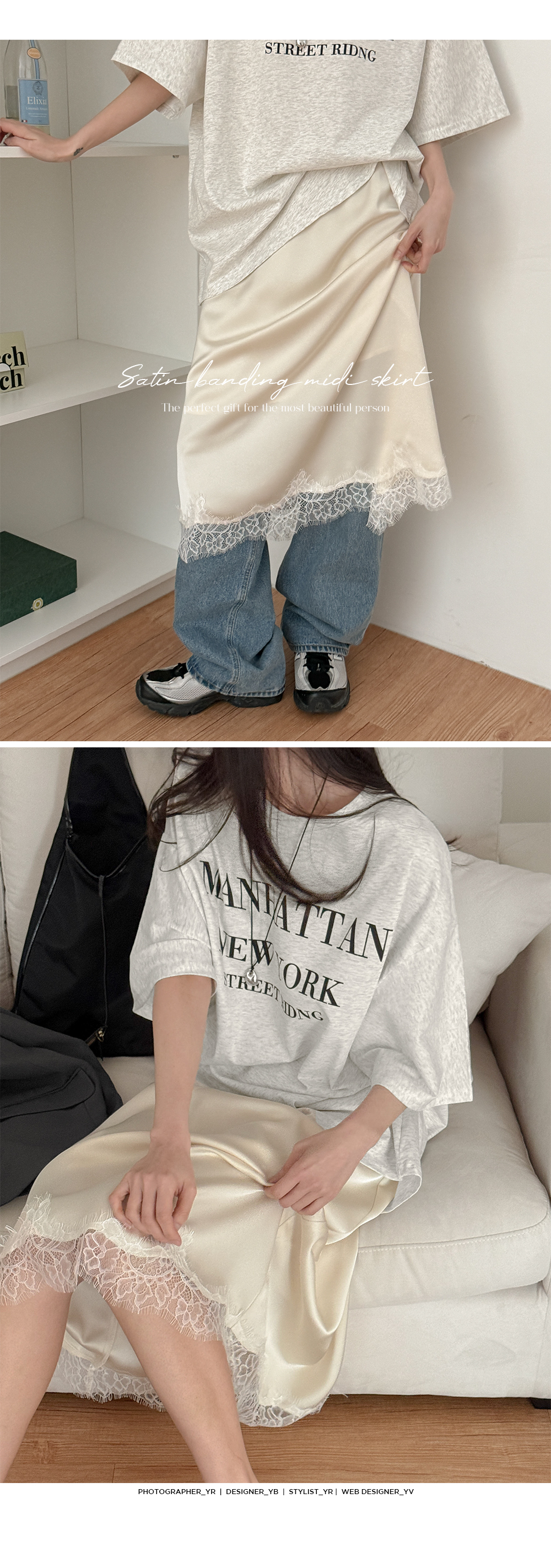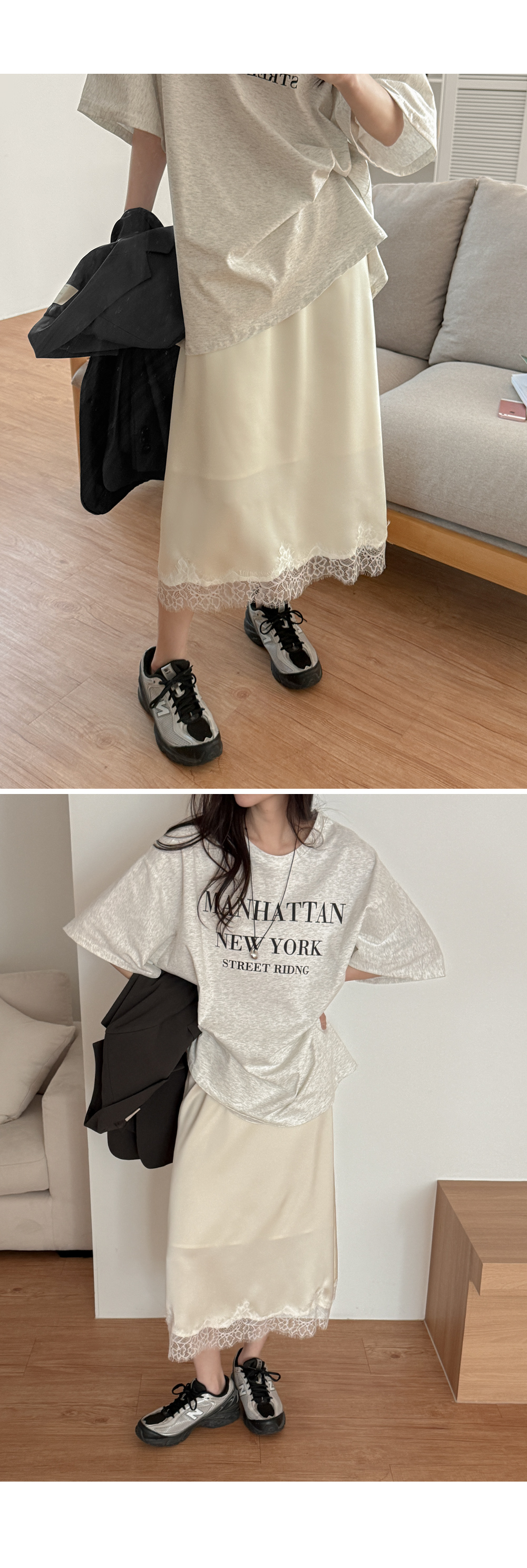 - 밑단에 더해진 레이스 디테일로 트렌디한 무드