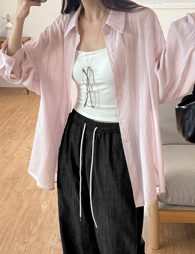 - 가볍게 걸치기 좋은 루즈핏 시스루 셔츠