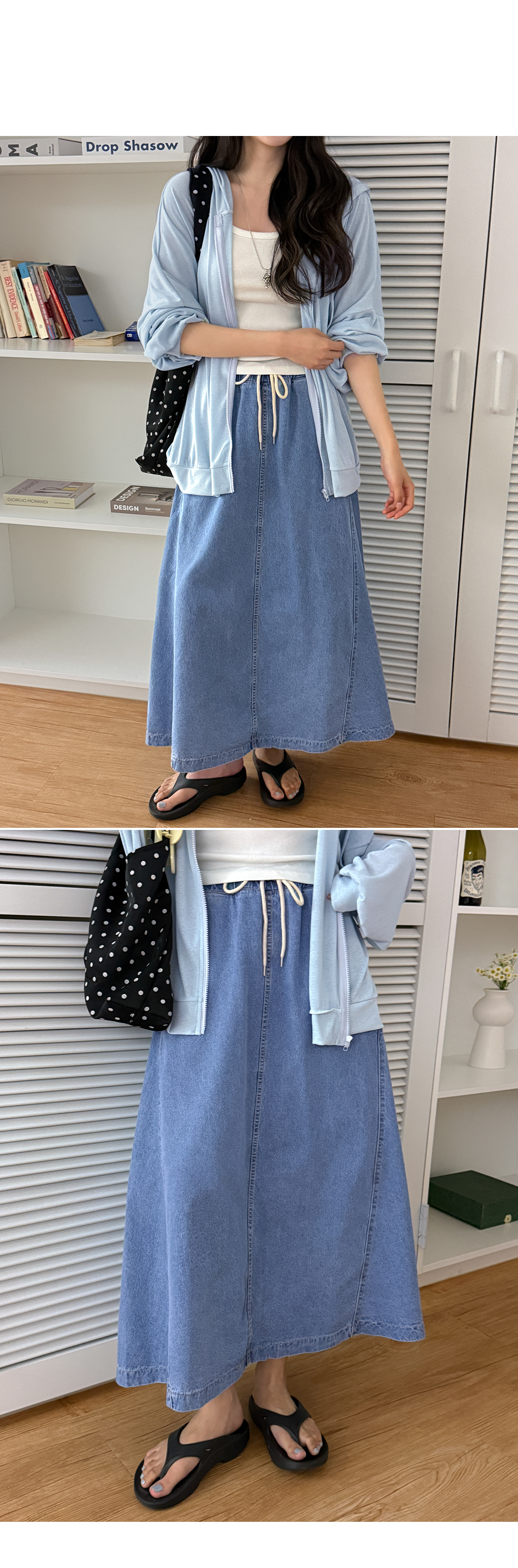 - 발목위로 떨어지는 롱한 기장감으로