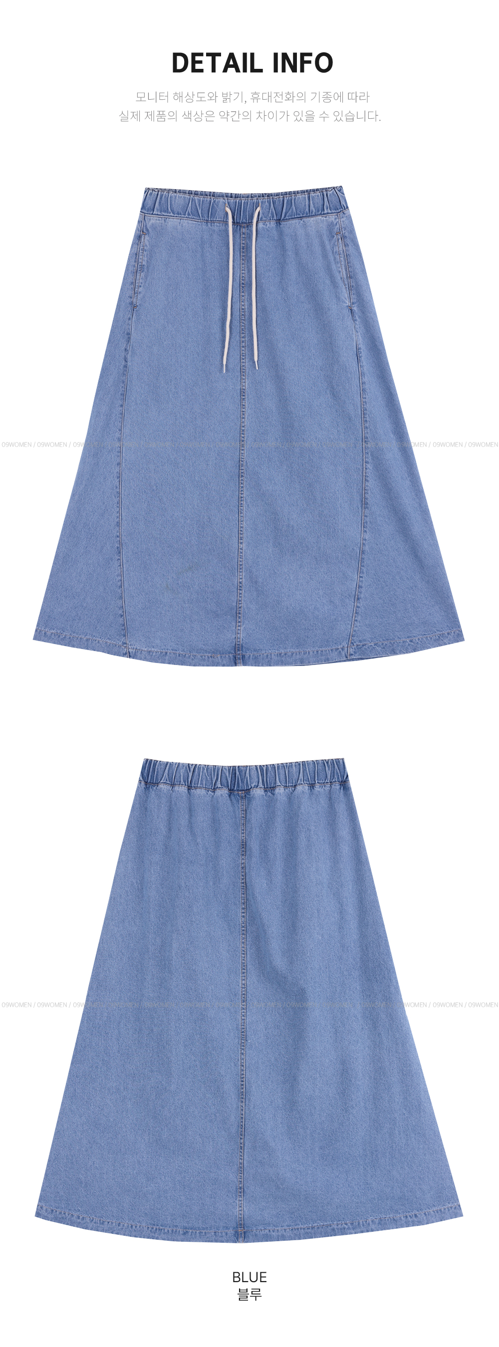 - 플레어 핏의 A라인 데님 스커트로