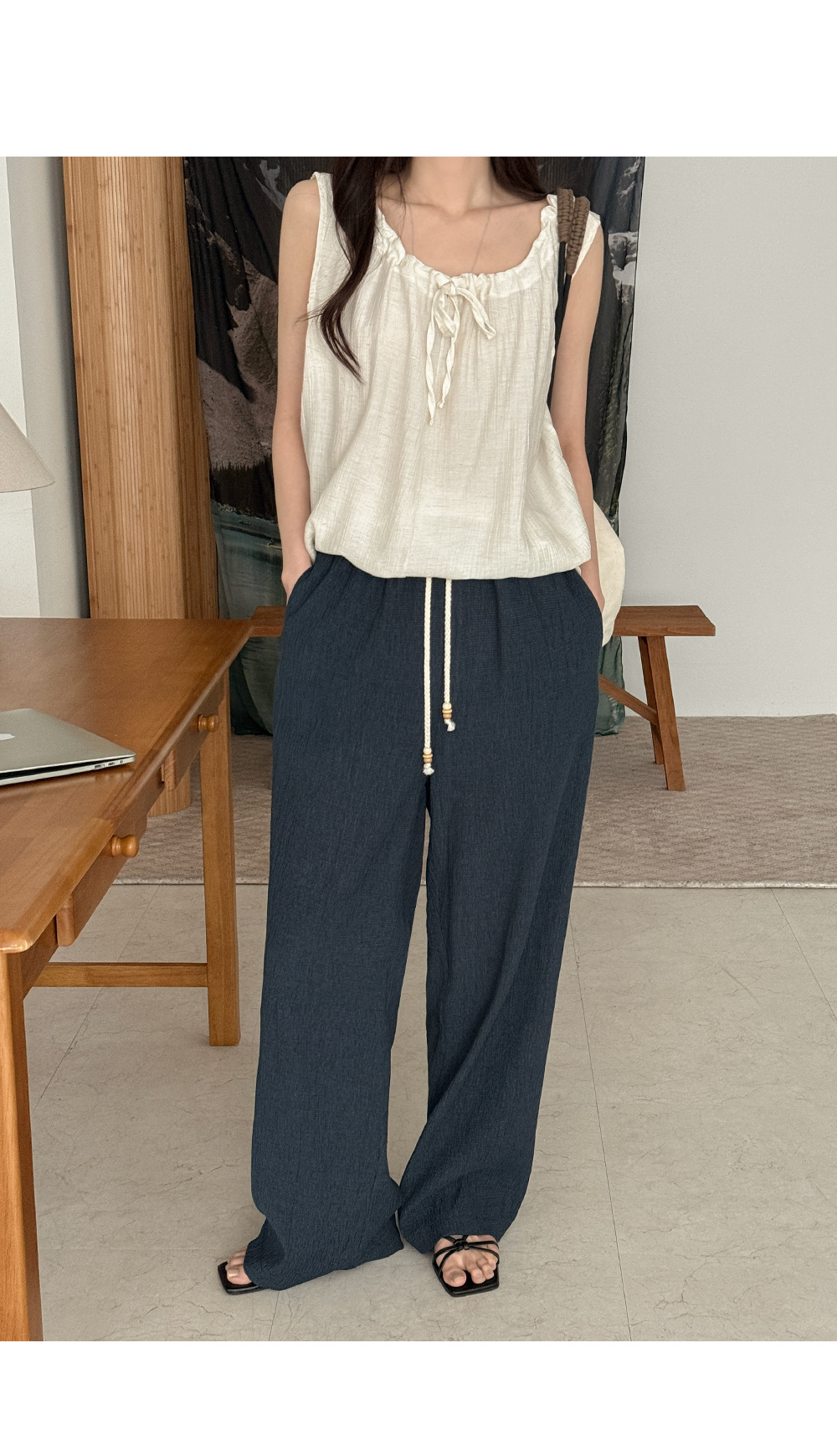 - 깔끔한 와이드 실루엣의 밴딩 팬츠이지만,