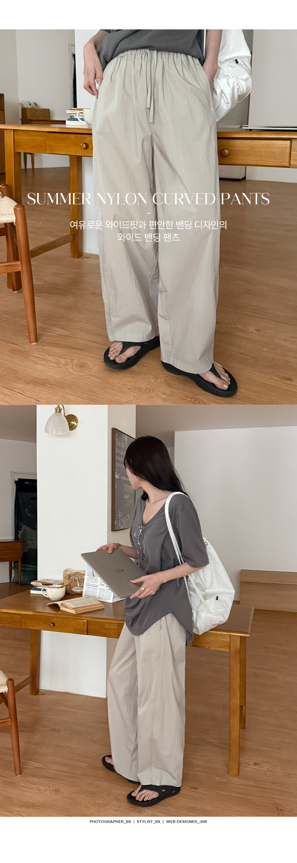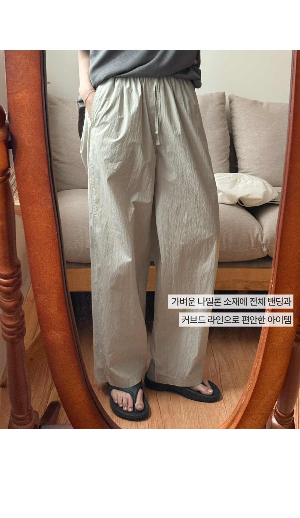 - 트렌디한 실루엣과 편안함을 모두 갖춘 나일론 팬츠