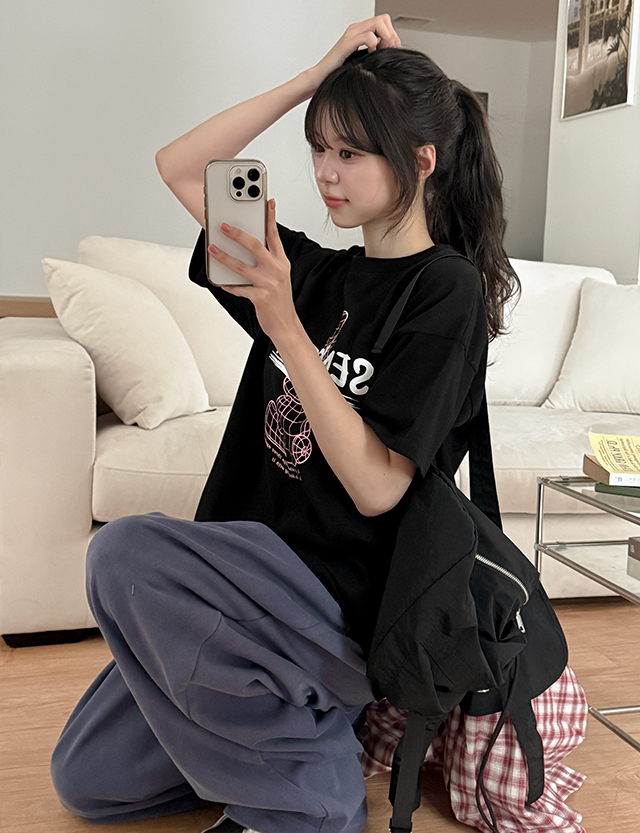ルーズフィットプリント半袖Tシャツ 70195