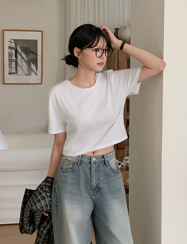 [주문폭주] 活用度 좋은 クロップド&미디 半袖 ティーシャツ 74586