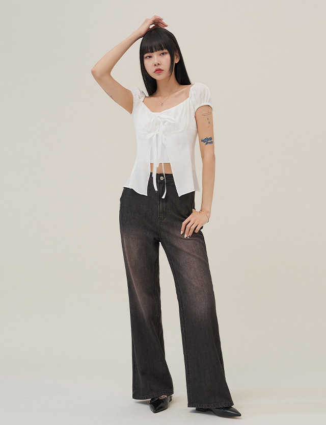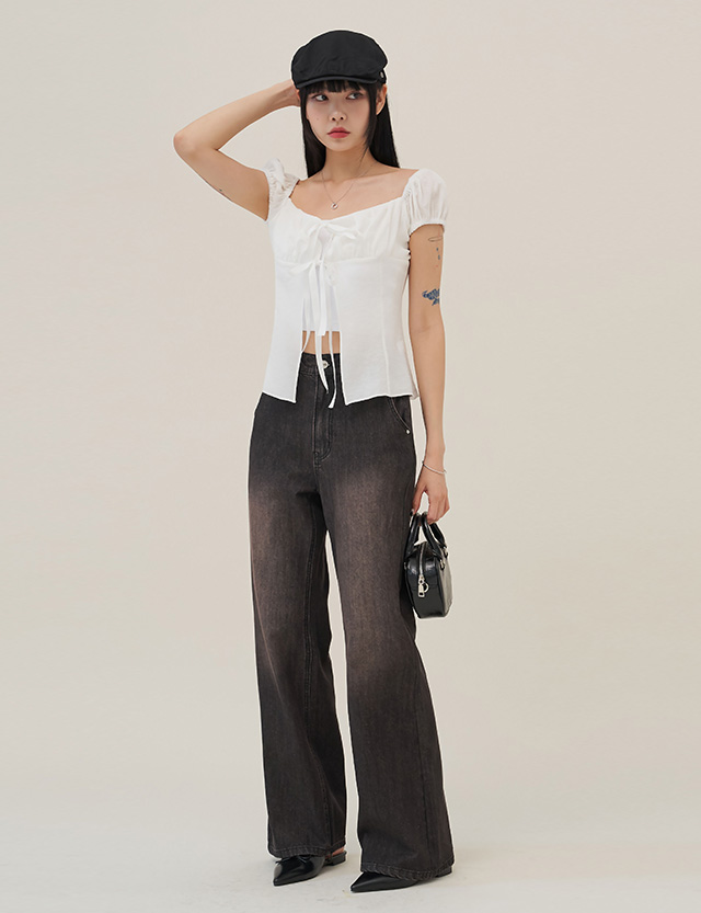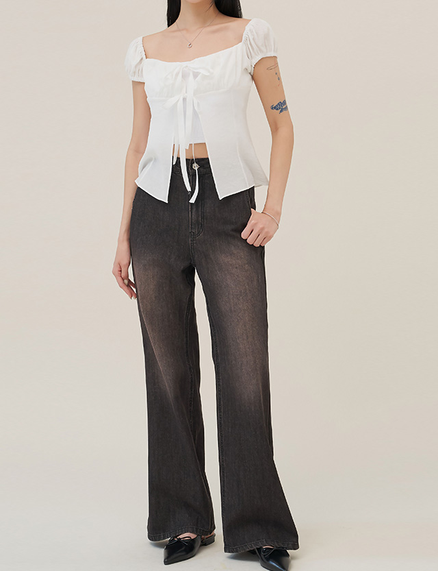 セミワイドブーツカットデニムパンツ(後ろゴム) 76051