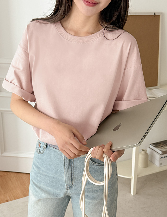 촉촉하고 소프트한 ラウンドネック 半袖 ティーシャツ 80968