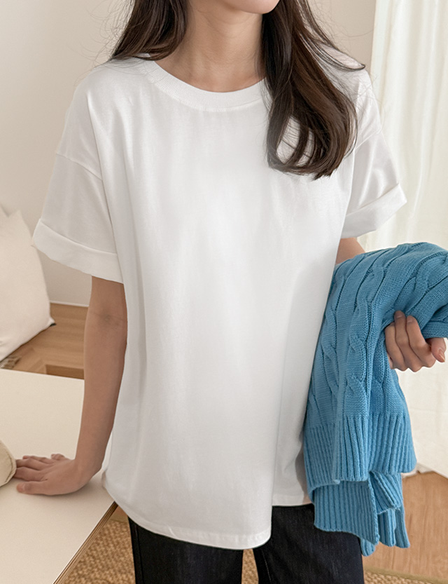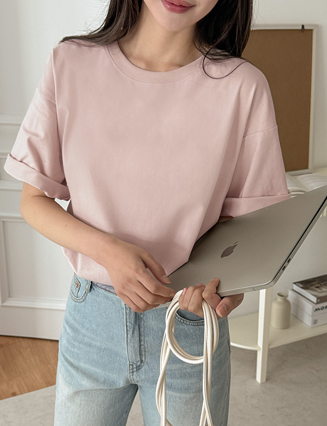 촉촉하고 소프트한 ラウンドネック 半袖 ティーシャツ 80968
