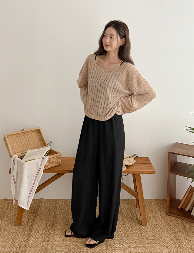 [特価20%] 썸머라이프 リネン ワイド ゴム パンツ 81559