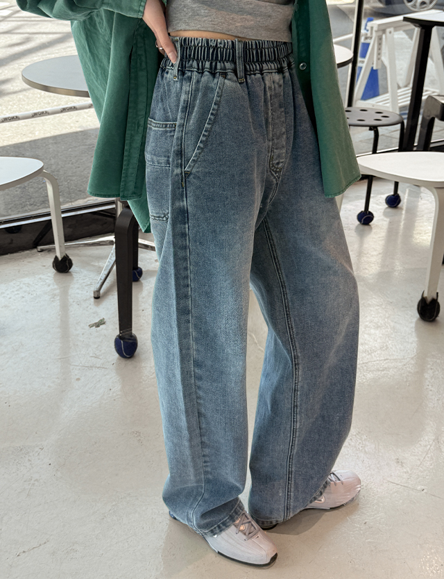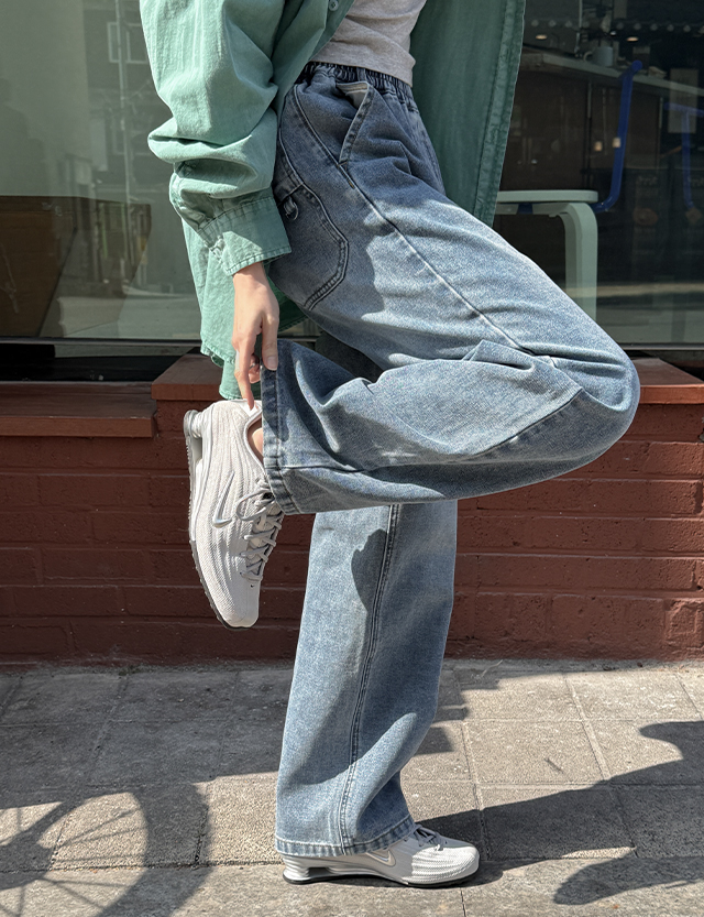 [特価20%] 카멜리 세미와이드 ゴム デニム パンツ 83756