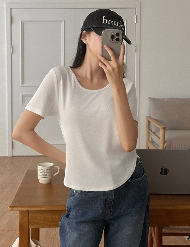 [半袖,長袖] 예쁜데 편안한 쫀쫀스판 クロップド ティーシャツ 84141