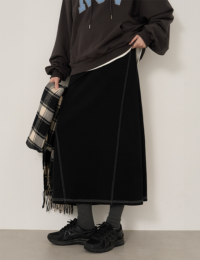 오르유 配色 Aライン ロング ゴム スカート 84288