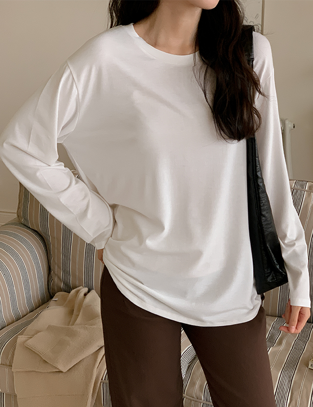 쫀득찰랑 ベーシック ラウンド 長袖 ティーシャツ 84202