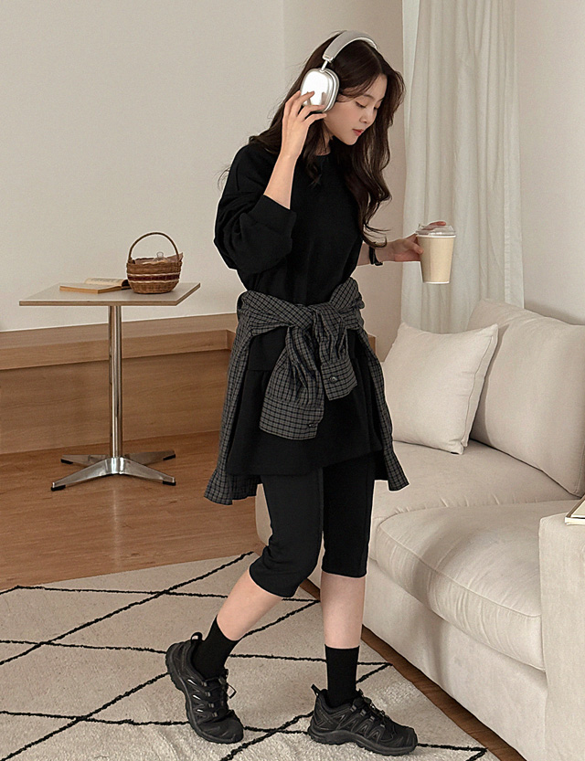 릿썬 ゴム 핀턱 7分丈 카프리 바이커 パンツ 84117