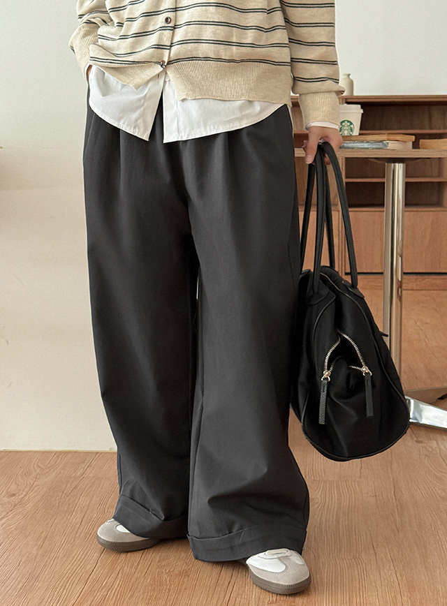 [09초이스] 깔끔 완벽 ロールアップ ゴム ワイド パンツ 83862