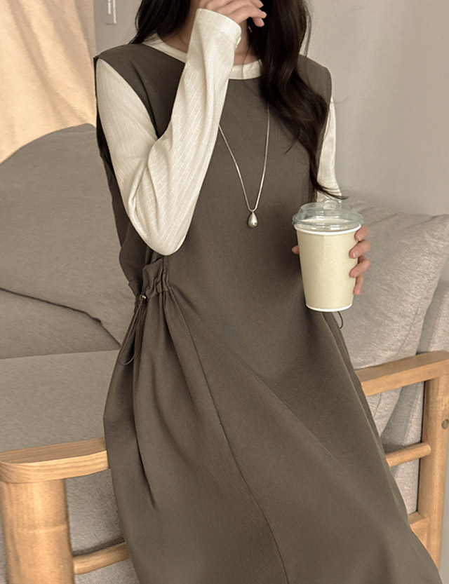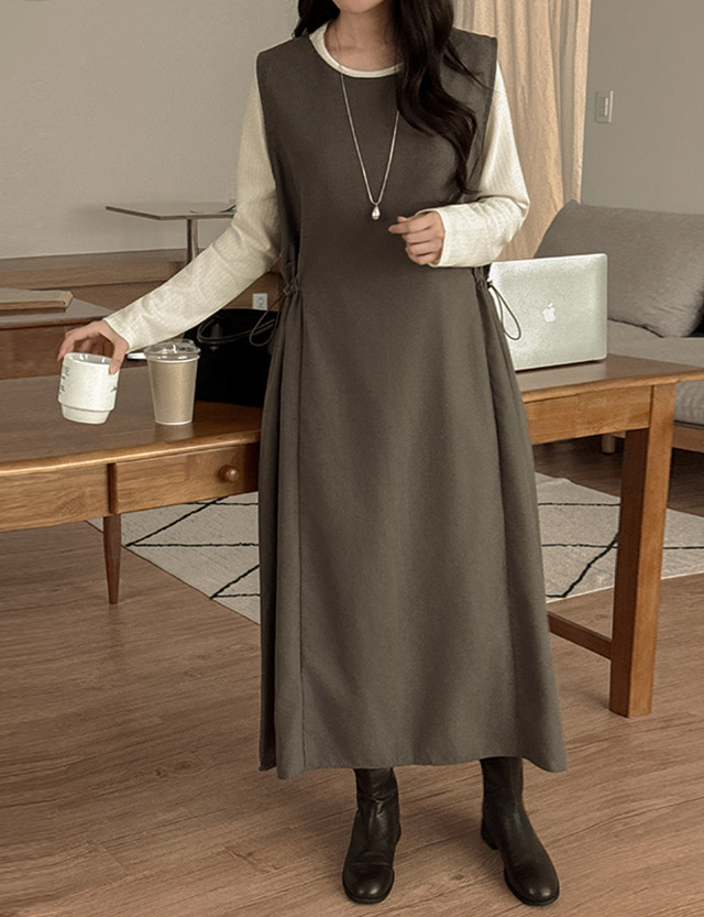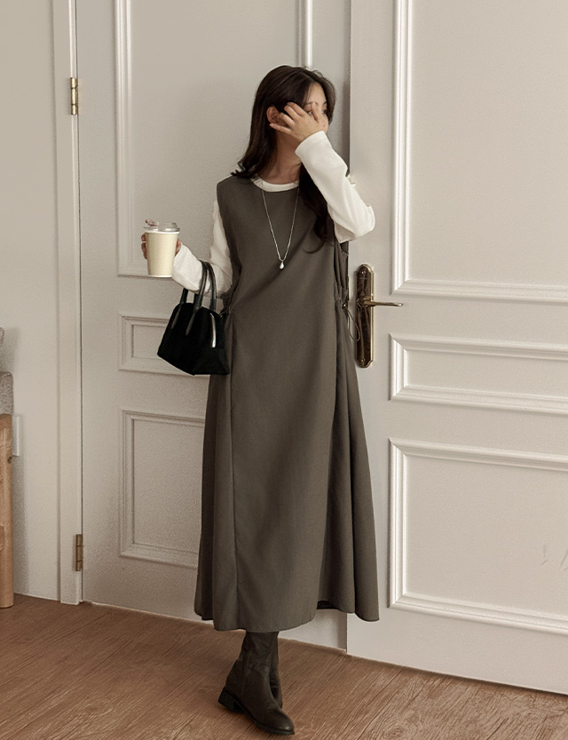 테루니 ラウンド 袖なし ストリング ロング ワンピース 84157