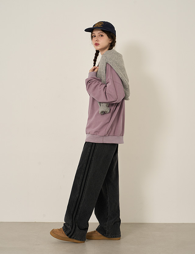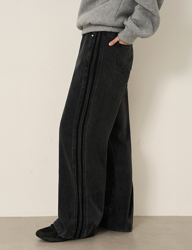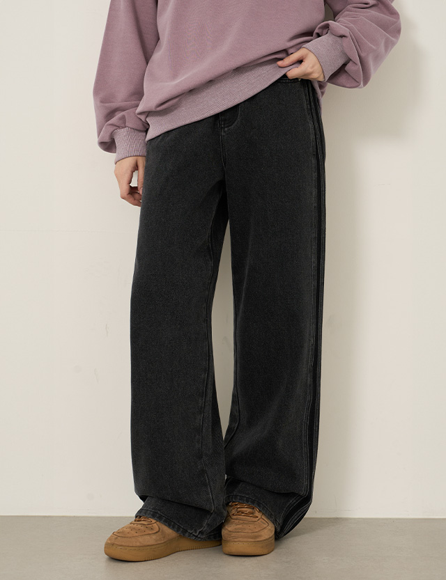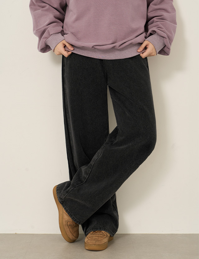 키샤 뒷밴딩 ブルーブラック ワイド 트랙 デニム パンツ 84373