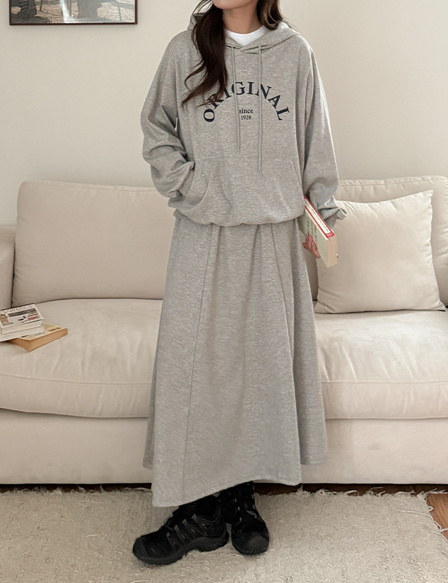 러빌 フードティーシャツ ゴム ロング フレア スカート セットアップ 84318