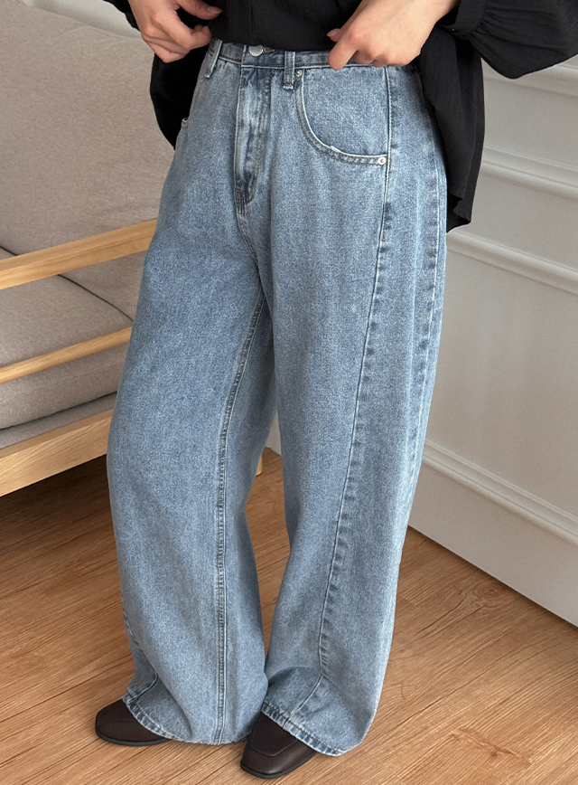[3가지기장]메키오 サイド 절개 ワイド デニム パンツ 84442