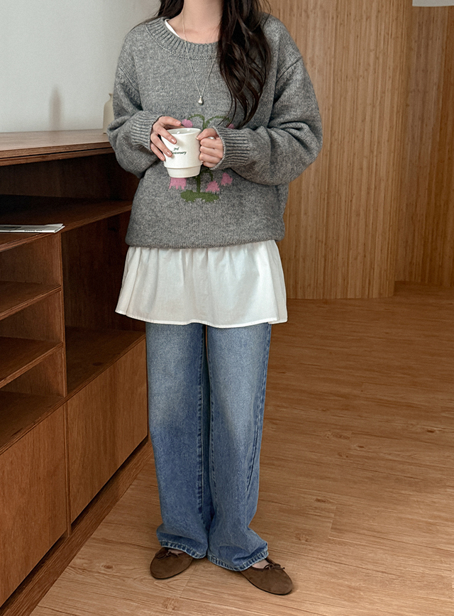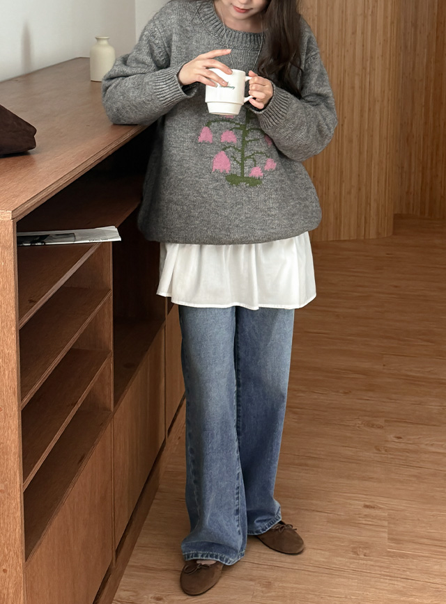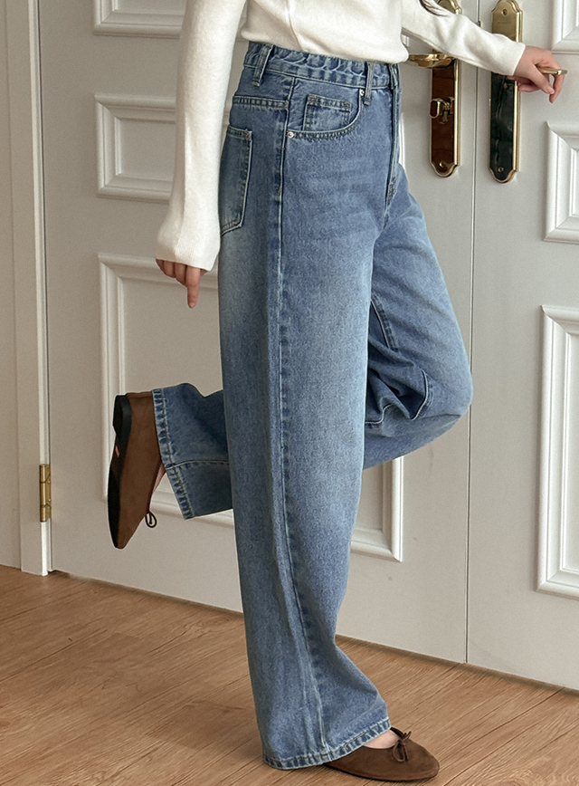 [3가지기장] 블루니 ウォッシュ ワイド デニム パンツ 84387