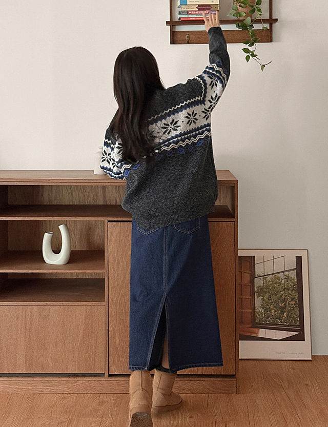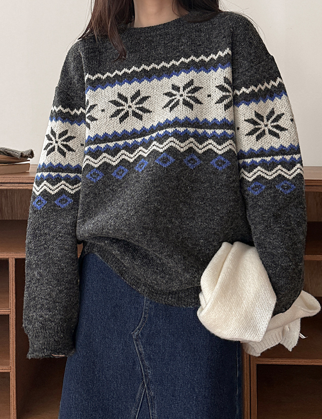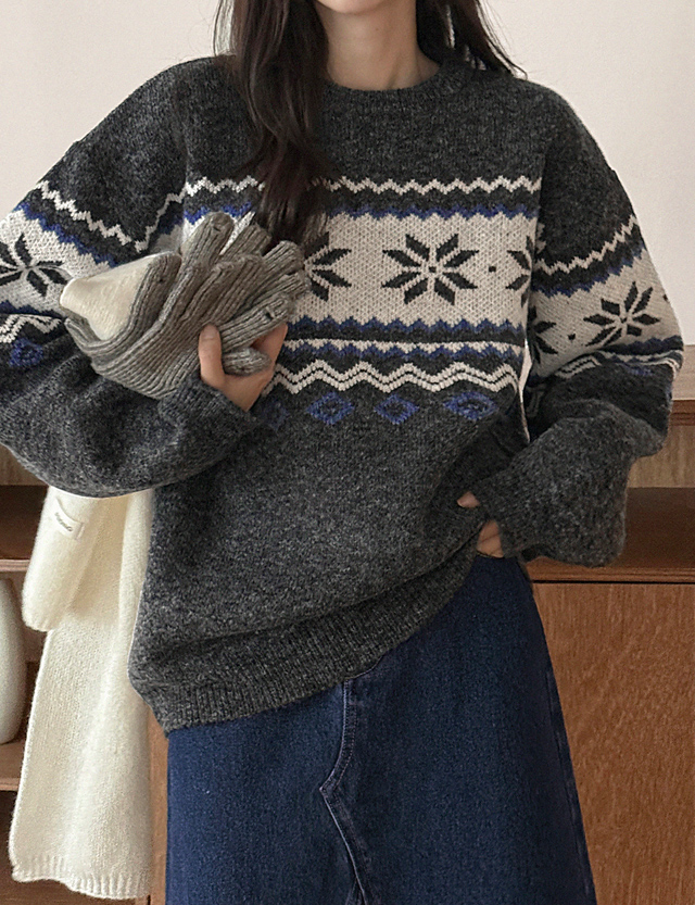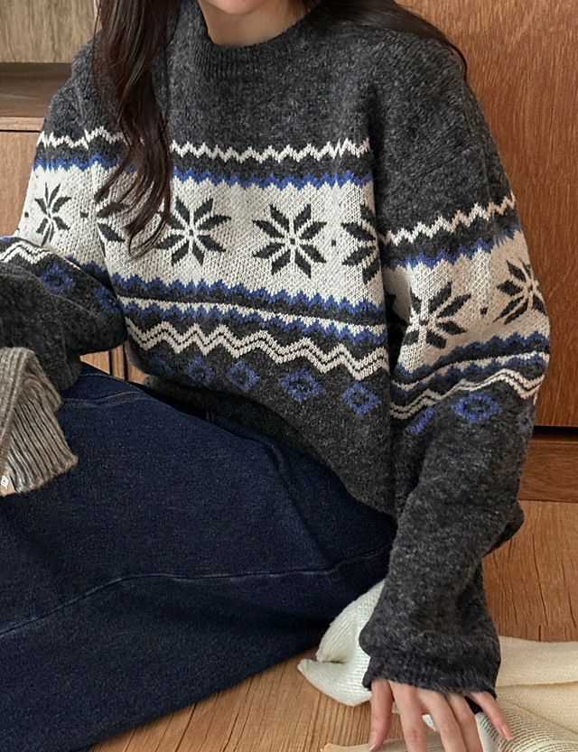 삿뽀롱 ルーズフィット ノルディック 자가드 ニット 84459