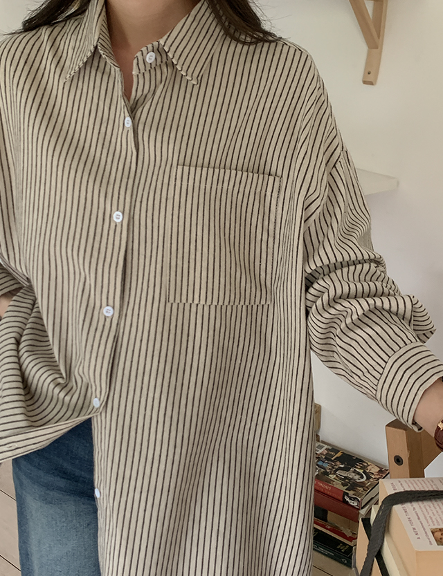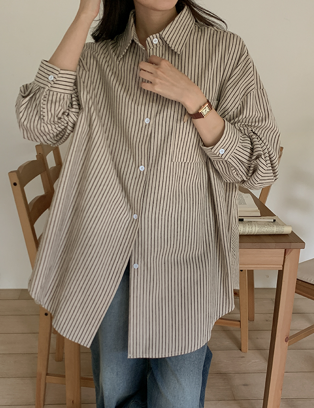 [09초이스][체형커버] 내품안에 쏙 리얼루즈핏 ストライプ シャツ 84364