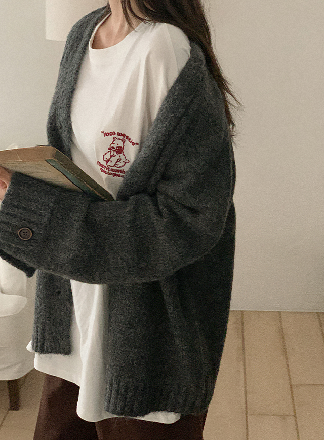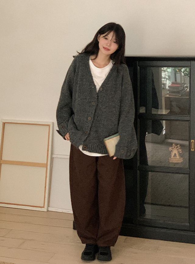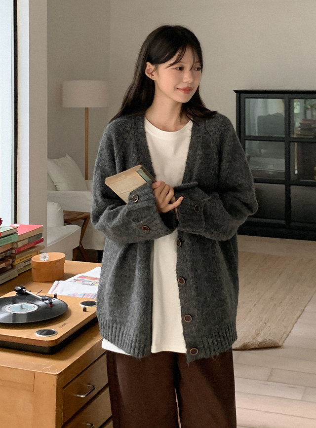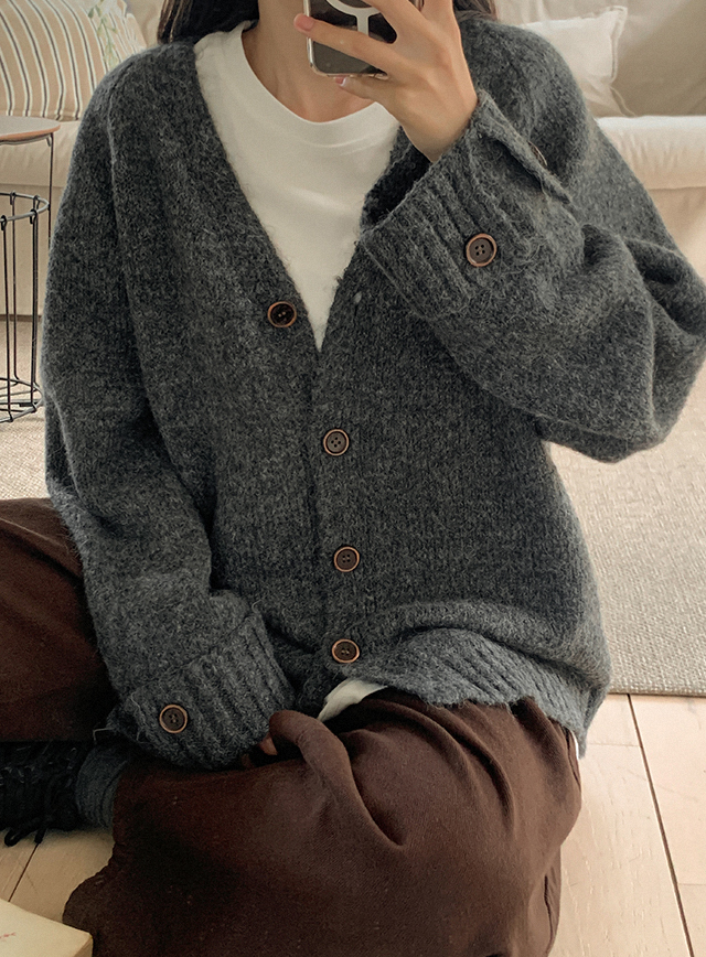 폰티 ルーズフィット 버튼 Vネック カーディガン 84335