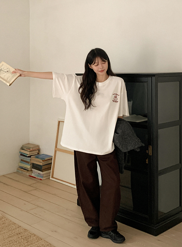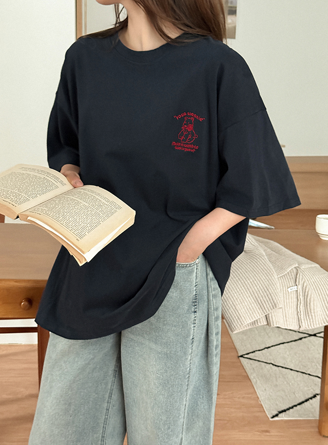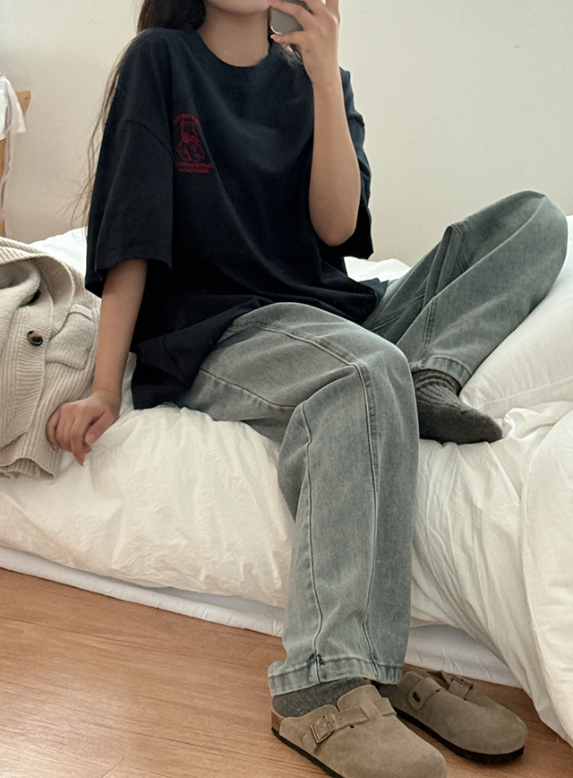 [09초이스] 댕스타그램 ルーズフィット 刺繍 半袖 ティーシャツ 84329