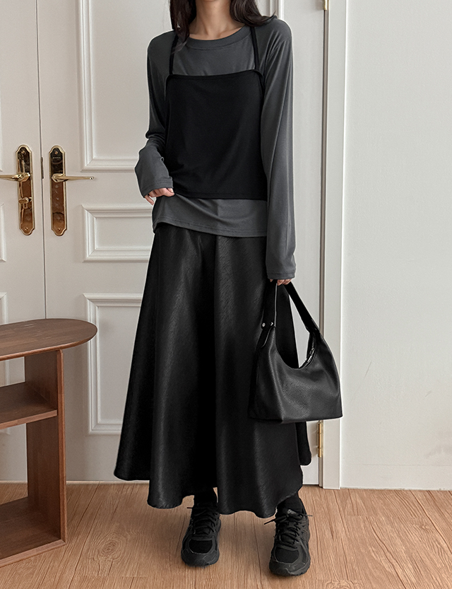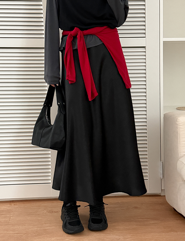 [09초이스] 입자마자 여신핏 히든밴딩 サテン フレア ロング スカート 84465
