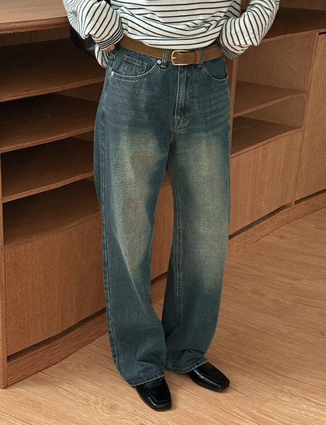 웰런 腰バンディング ビンテージ ウォッシュ ワイド デニム パンツ 84299