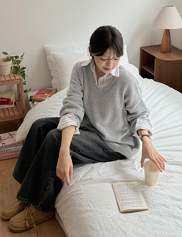 부들부들 보카시 ルーズフィット Vネック ニット 84198