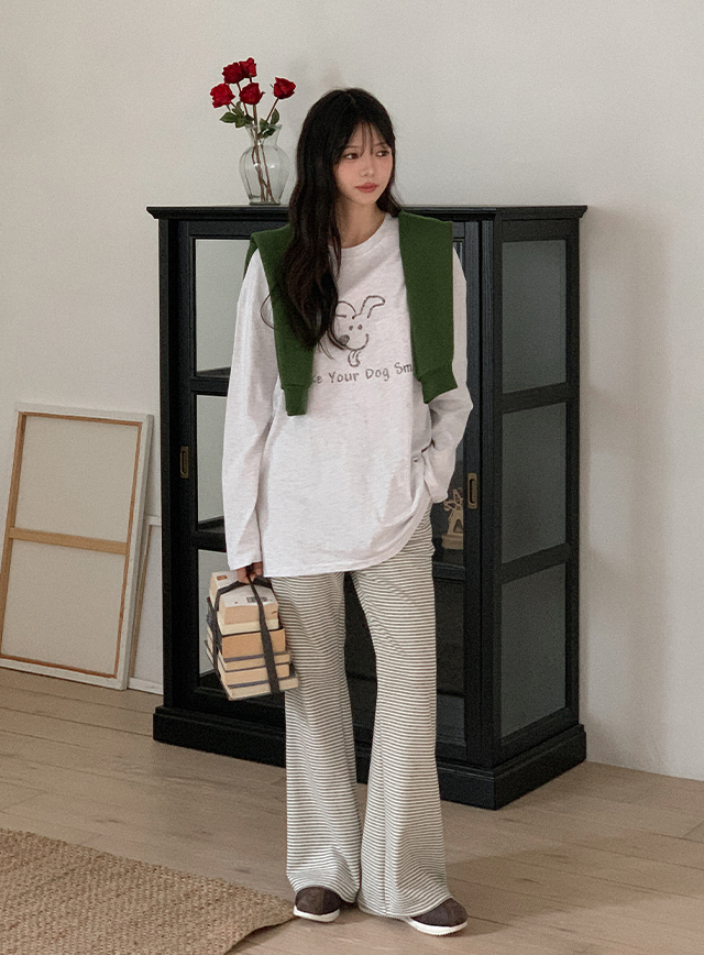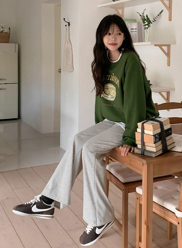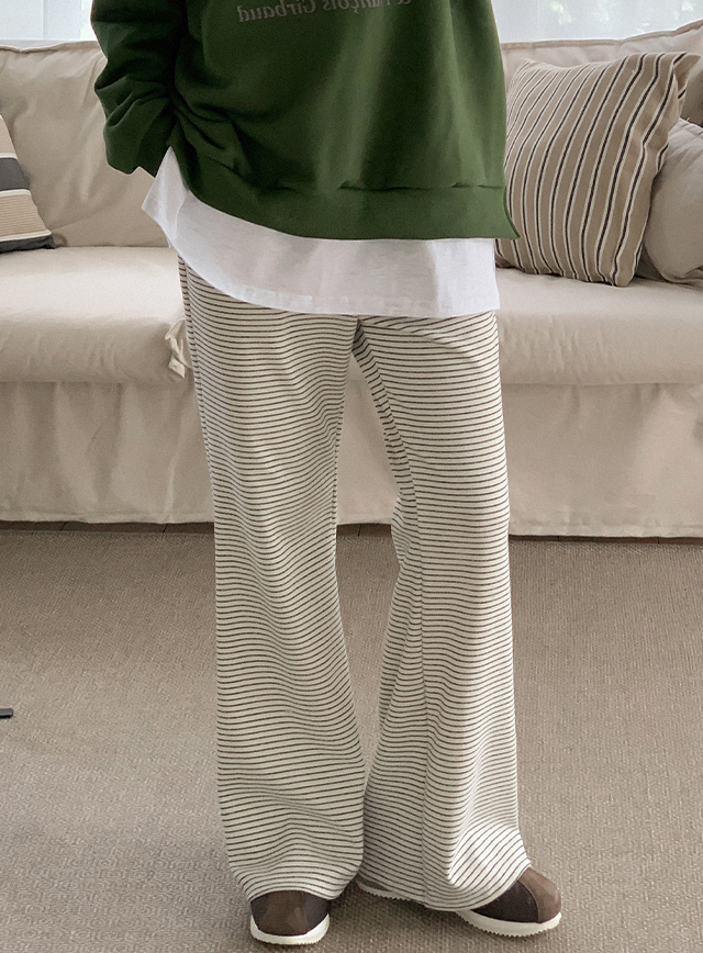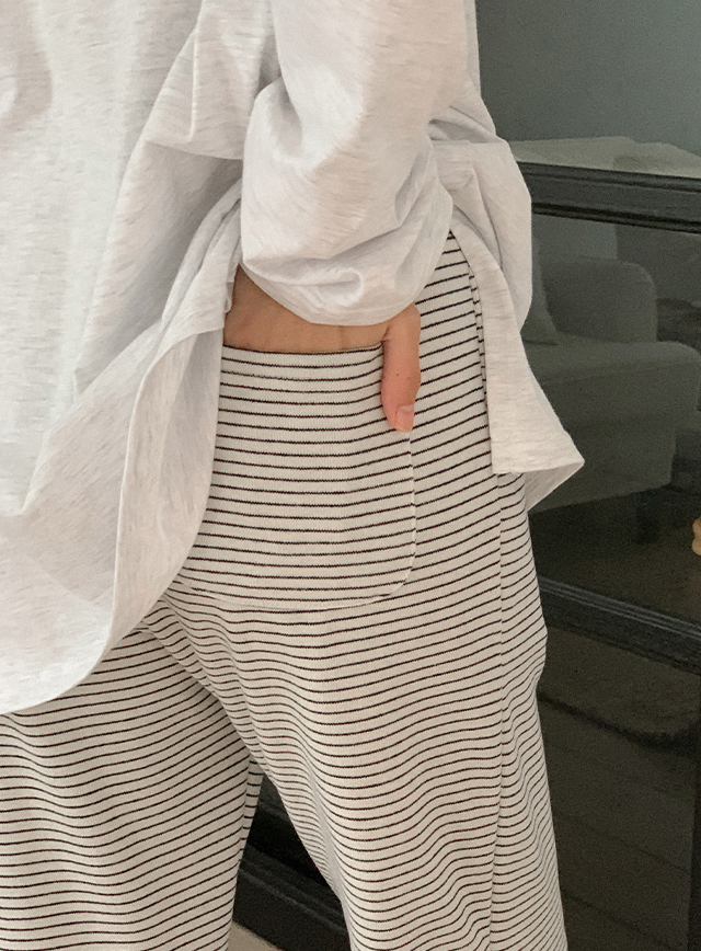 센티 세미와이드 ゴム ストライプ パンツ 84342