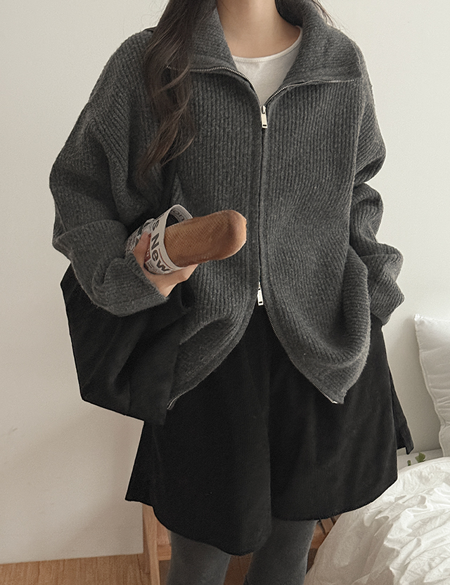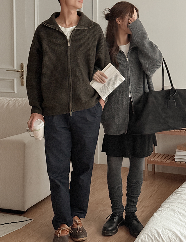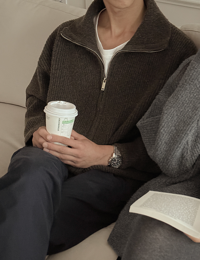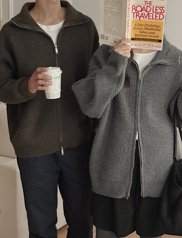[남녀공용]딥무스 カラー 2way ウール ニット ジップアップ 84477